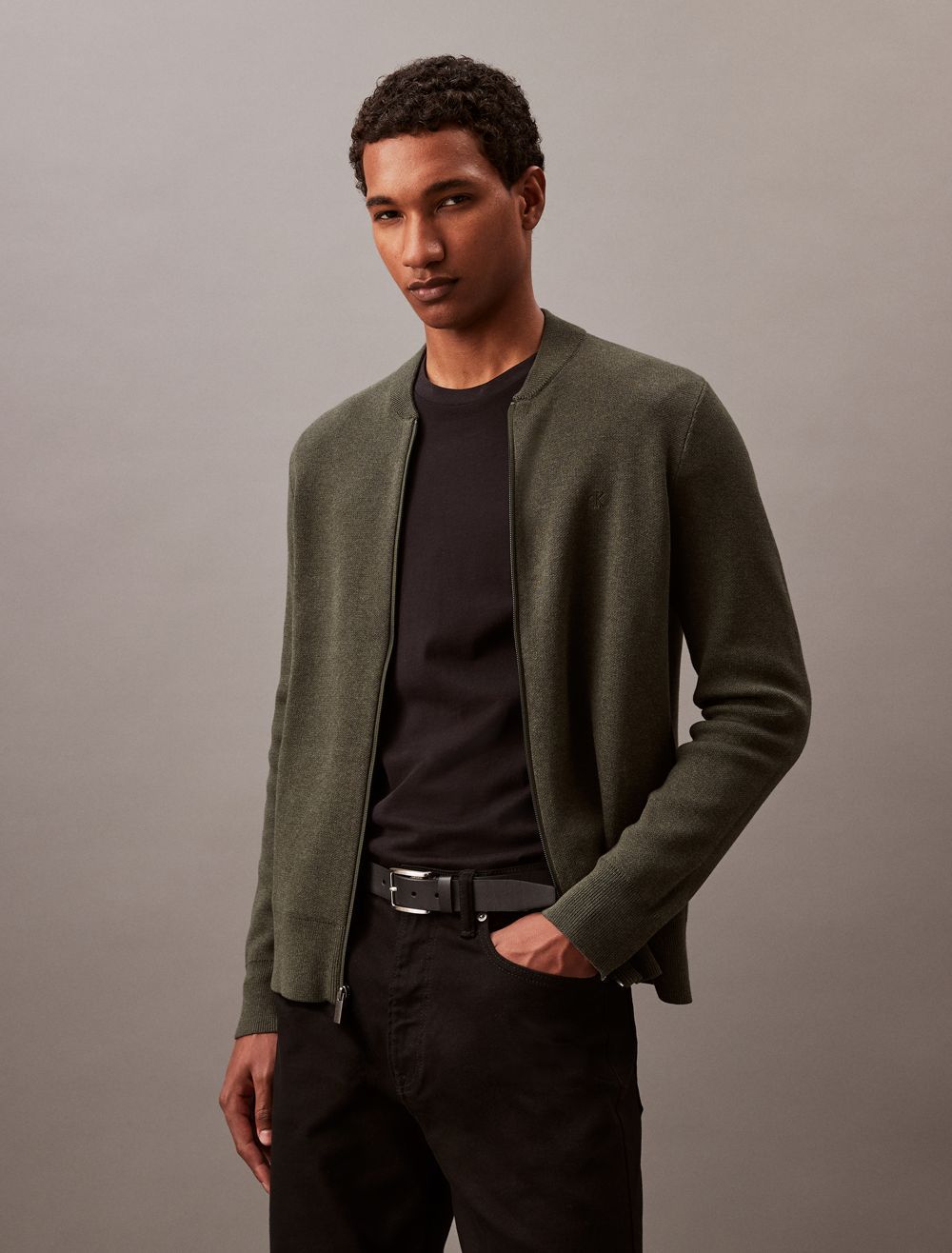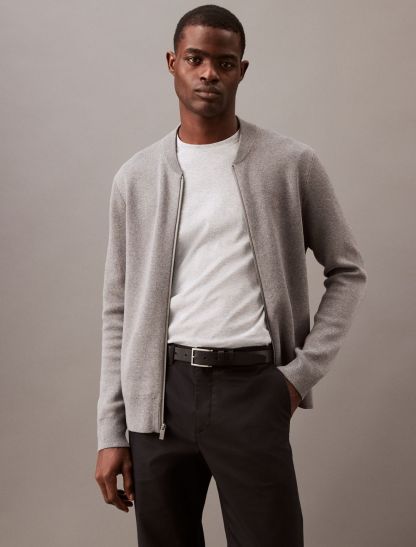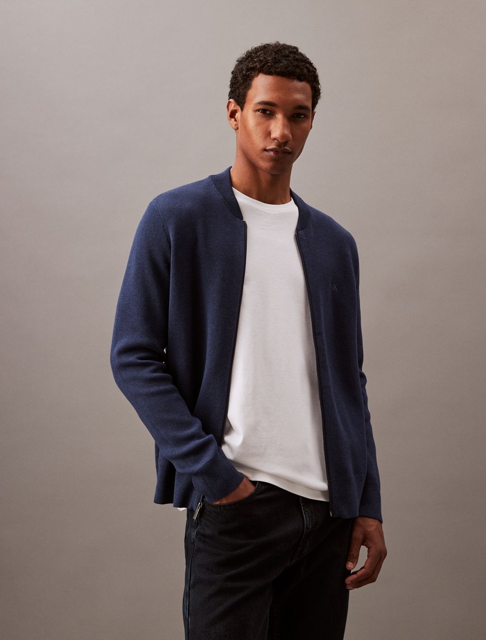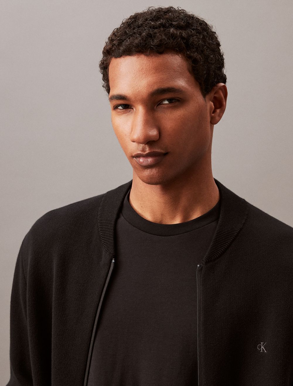Crafted from soft compact cotton for premium breathable comfort, this Calvin Klein bomber jacket features a versatile solid look and iconic monogram logo styling. An essential top layer, this classic jacket is finished with ribbed knit trim and side pockets.- Monogram logo for a retro-inspired, signature look