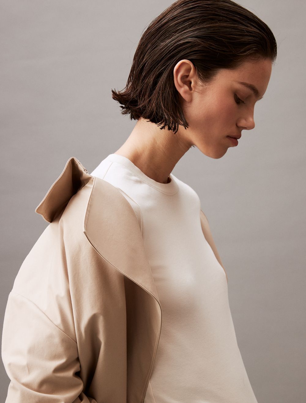 - Short sleeves + crewneck