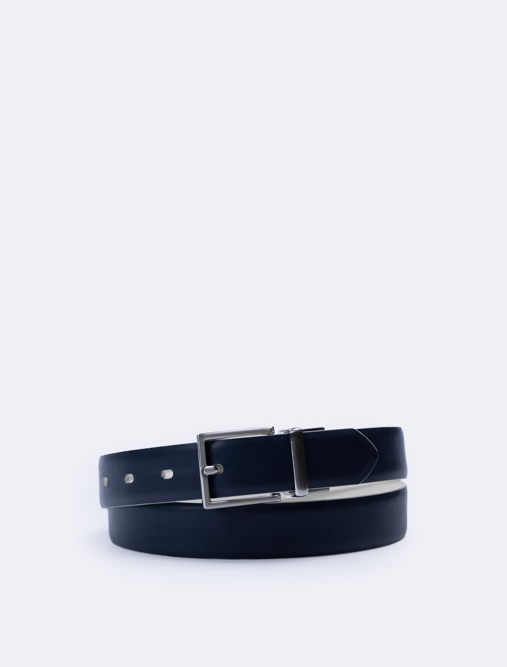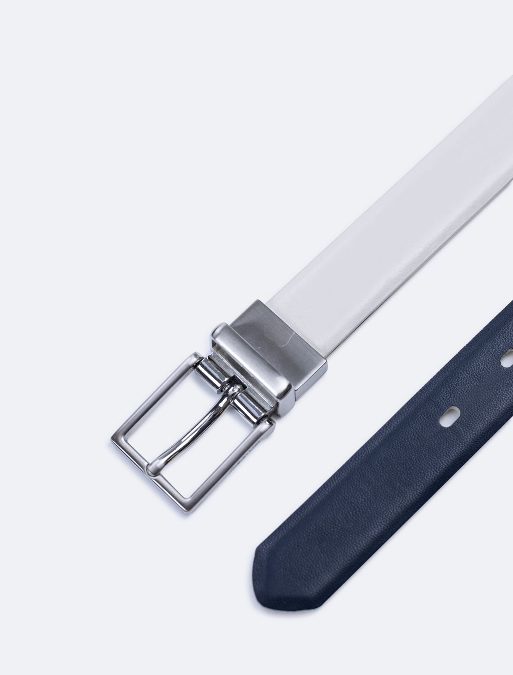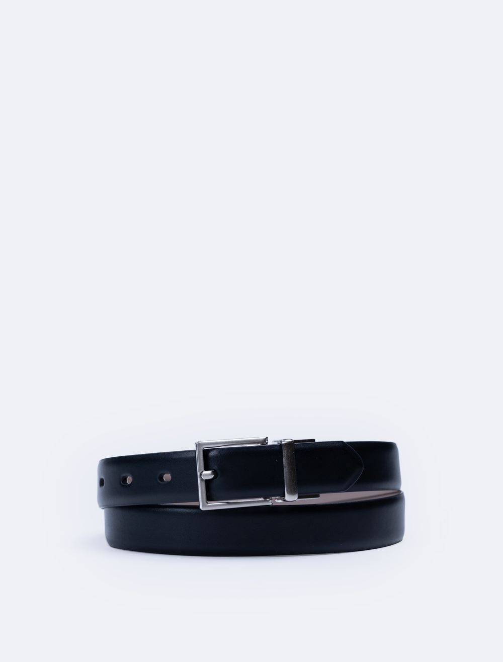 A minimal piece made with a smooth, solid body, this belt styles well with office and formal outfits. Created with a harness buckle and features a reversible design.- Reversible design