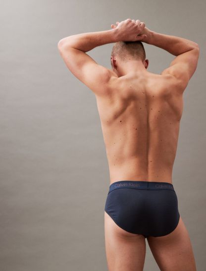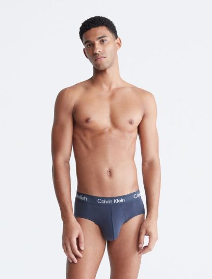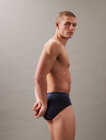 Cut with a low rise waist, this hip brief set comes in a 3-pack. Designed with a classic Calvin Klein elastic logo waistband for soft, flexible wear. Made with a contoured pouch for added support and crafted from a recycled cotton blend for reduced environmental impact.- Soft, flexible logo waistband retains shape wear after wear and stays put, without too much compression.