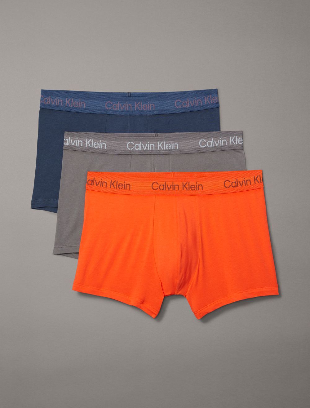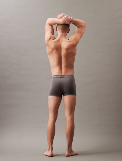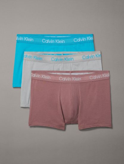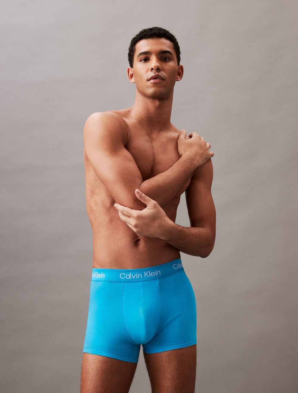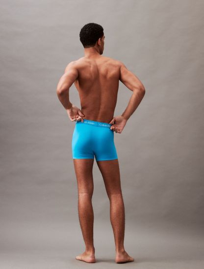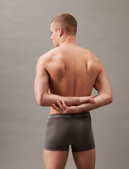 Cut with a low rise waist, this trunk set comes in a 3-pack. Designed with a classic Calvin Klein elastic logo waistband for soft, flexible wear. Made with a contoured pouch for added support and crafted from a recycled cotton blend for reduced environmental impact.- Soft, flexible logo waistband retains shape wear after wear and stays put, without too much compression.