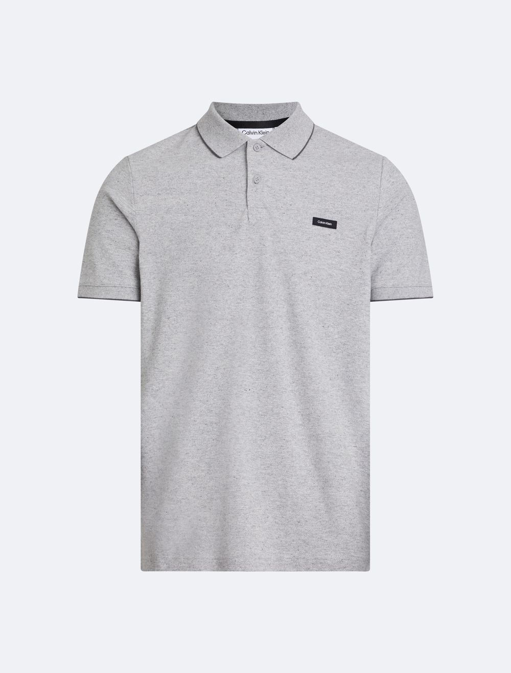 Slim-fitted, this polo shirt has a solid body framed by contrasting thin tipping stripes. Crafted from an organic cotton blend in a pique knit for reduced environmental impact and total comfort. Finished with a Calvin Klein logo patch at the upper chest.- Cotton stretch pique