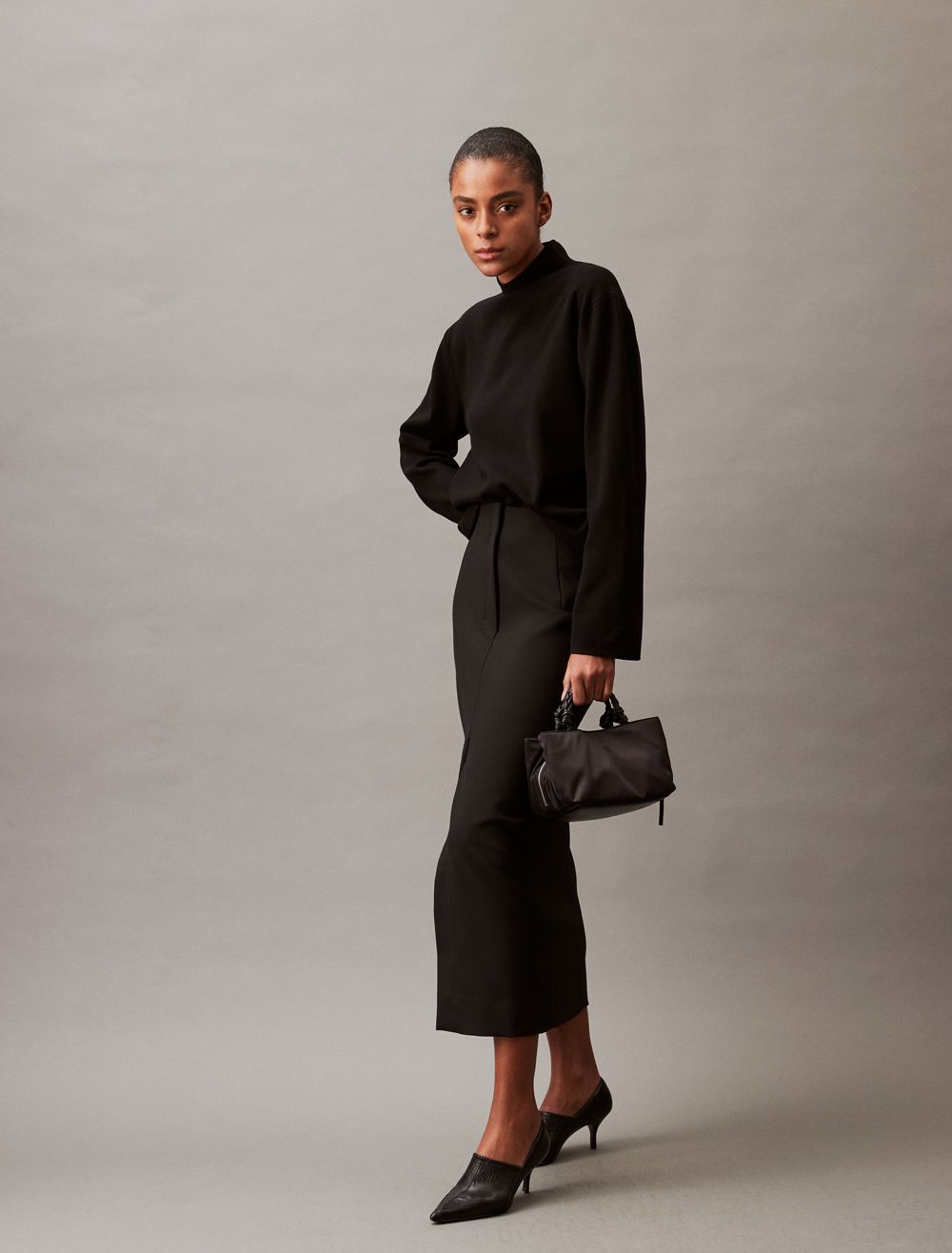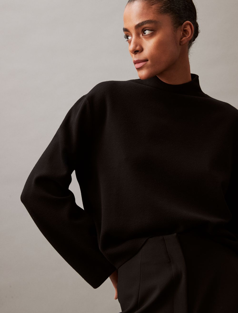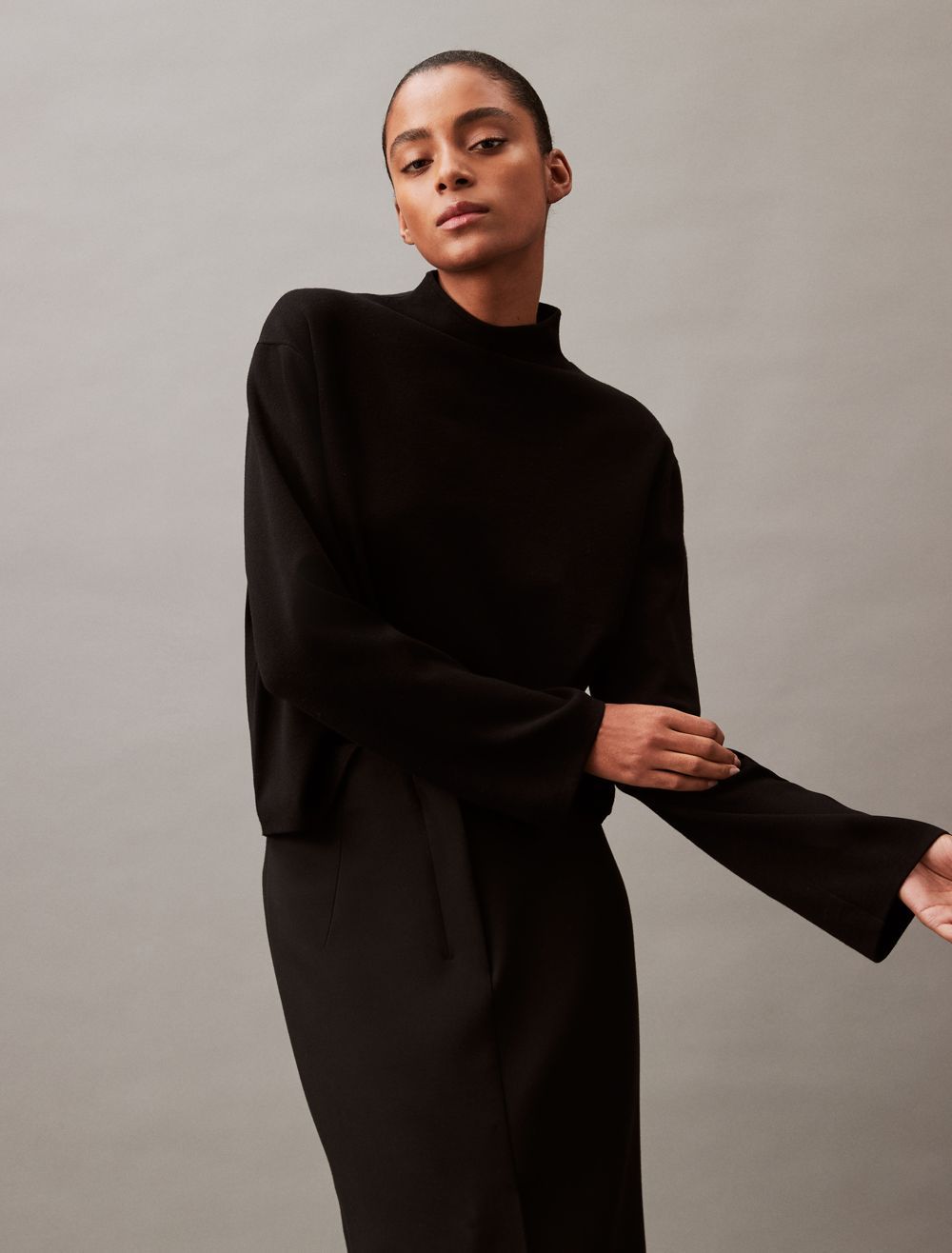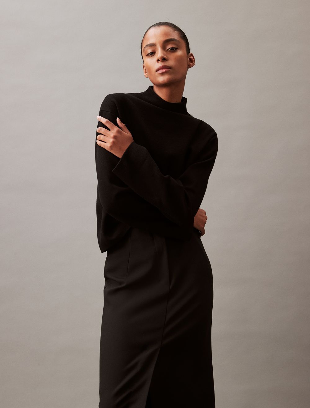 - Long sleeves + mock neck