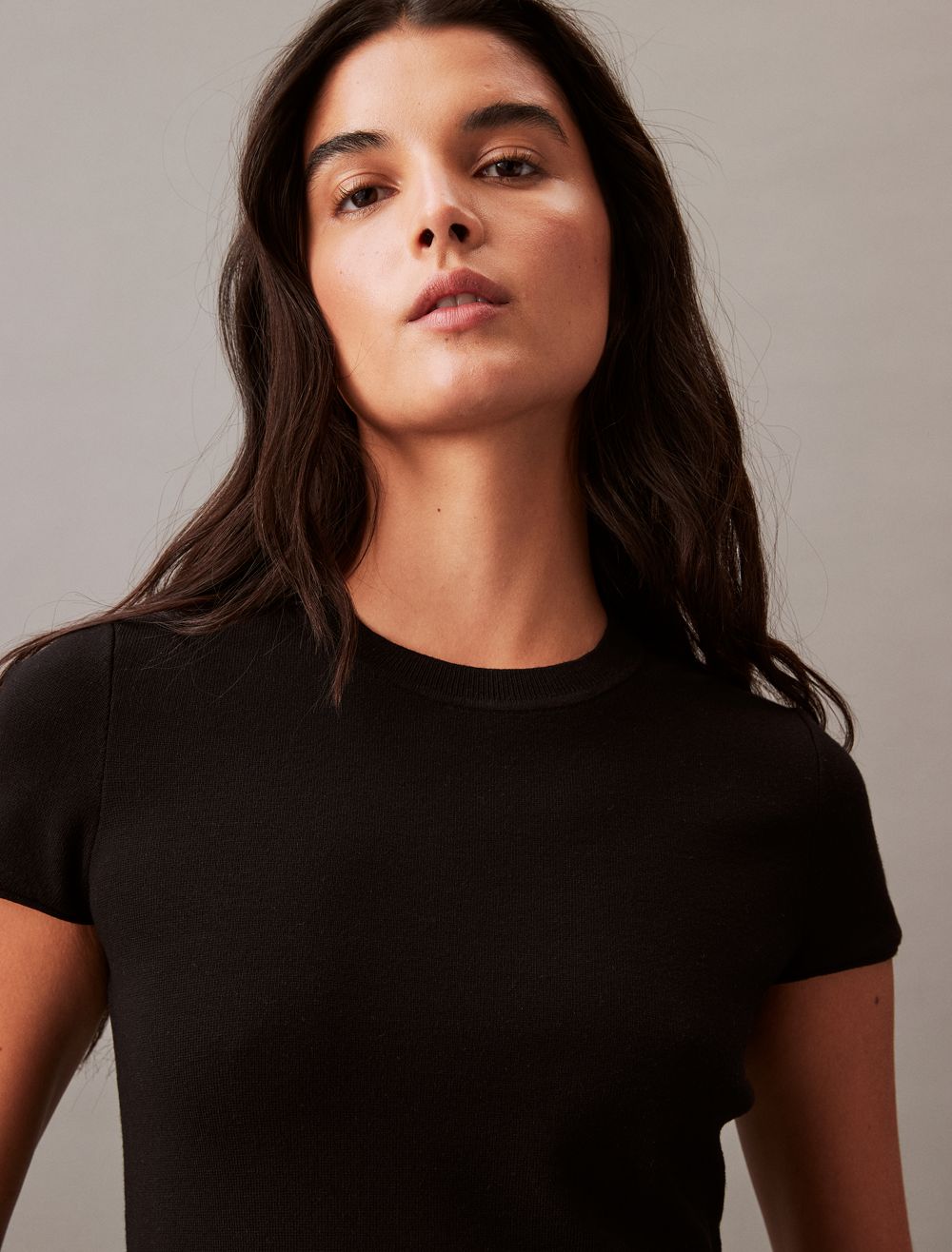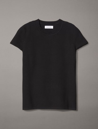 Woven with a half milano knit, this t-shirt is styled with short sleeves and a crewneck. Cut in a slim silhouette. Created with simple, solid styling for a modern look.- Half milano knit