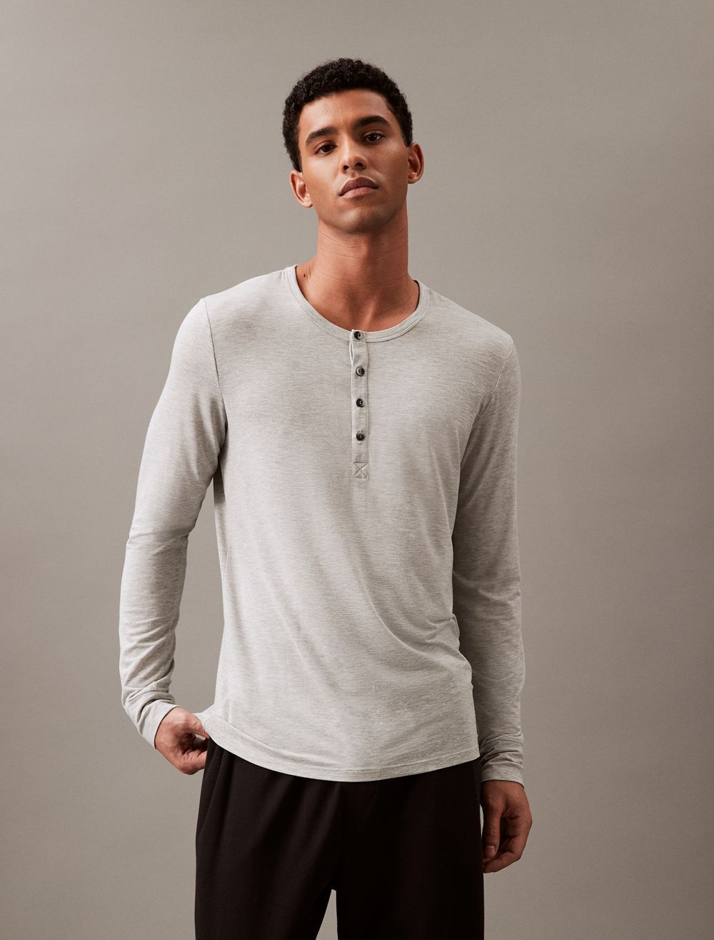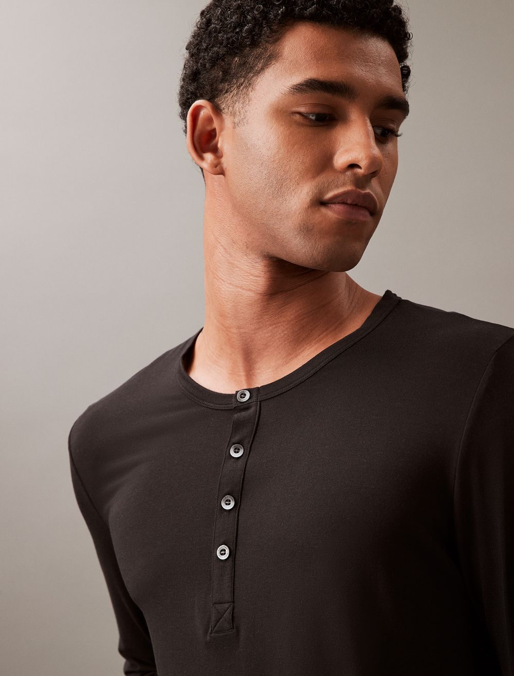 Breathable ultra-soft modal stretch. Crafted with a super soft hand, this Calvin Klein henley t-shirt is designed with a crewneck, a fitted body and button closures at the neckline.- Soft modal with added breathability and long lasting fibers
