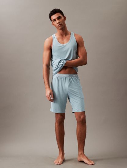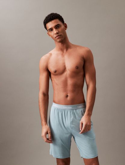 Breathable ultra-soft modal stretch. Crafted from responsibly sourced modal. these Calvin Klein sleep shorts are designed with a super soft recycled logo waistband, front slip pockets and straight legs.- Responsibly sourced modal with added breathability and long lasting fibers