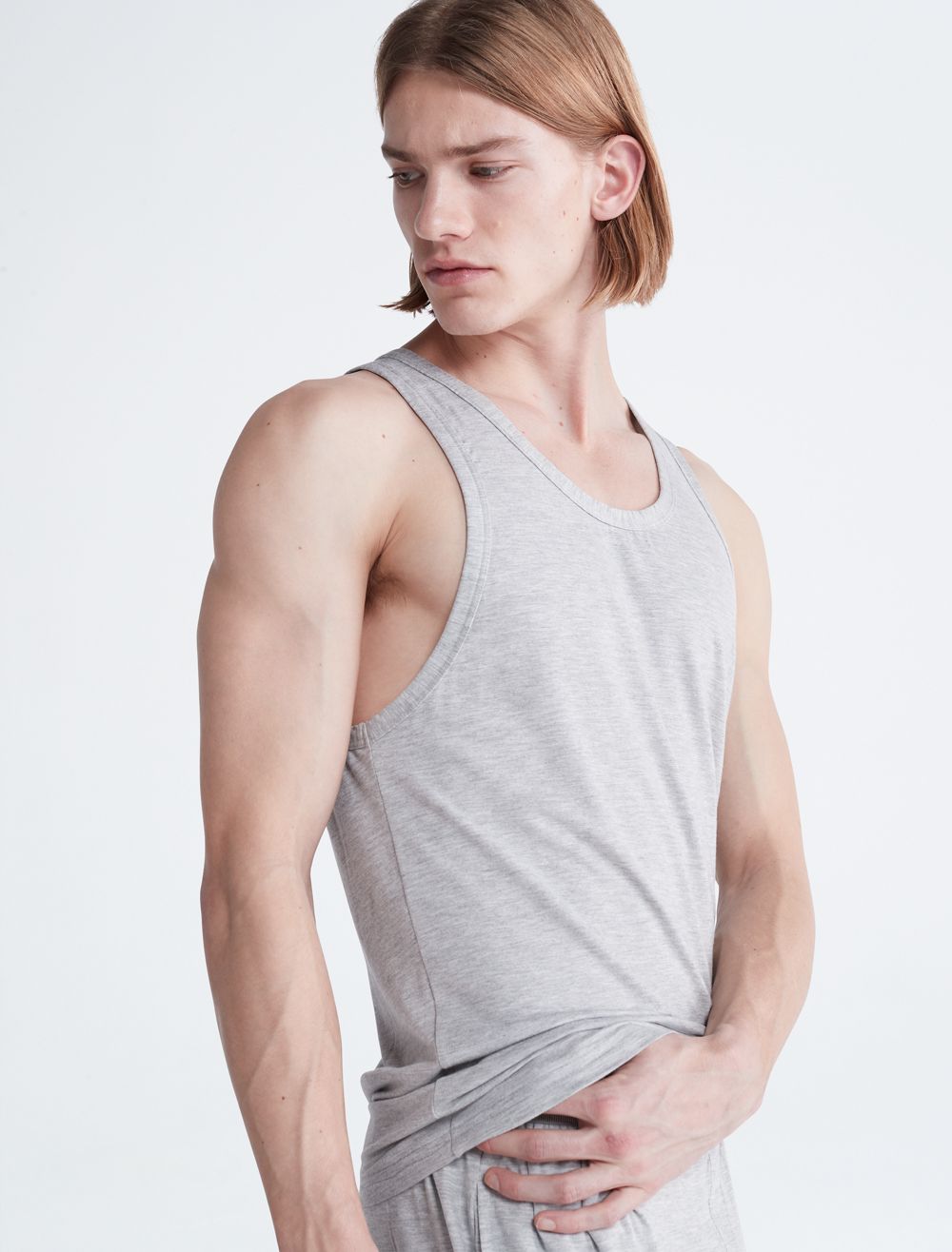 Breathable ultra-soft modal stretch. Crafted from responsibly sourced modal, this Calvin Klein tank top is designed with a scoopneck, a fitted body and seaming details.- Responsibly sourced modal with added breathability and long lasting fibers