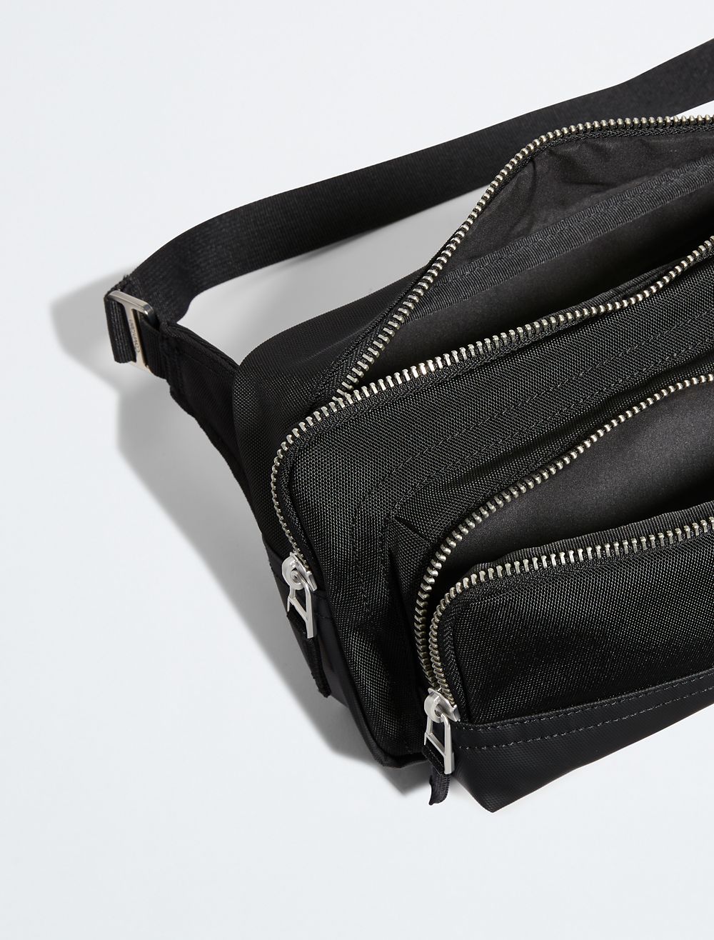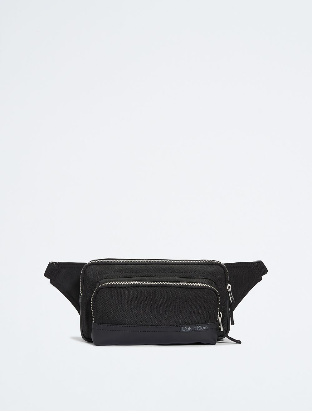 Crafted from 100% reprocessed polyester, this waistpack features a sustainable design. Made with a zip closure at the main compartment and a front zip pocket. Styled with an adjustable strap for waist or crossbody wear. Finished with a Calvin Klein woven logo tag at the front.- Zip closure main compartment