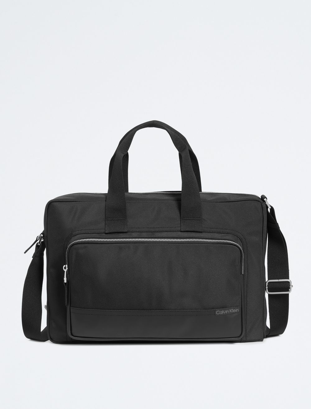 Crafted completely from recycled polyester for reduced environmental impact, this utilitarian-inspired bag is designed to carry your travel essentials. Made with dual carry handles and an adjustable shoulder strap. Created with a front zip pocket for maximum storage and finished with a Calvin Klein woven logo tag at the front.- Dual carry handles