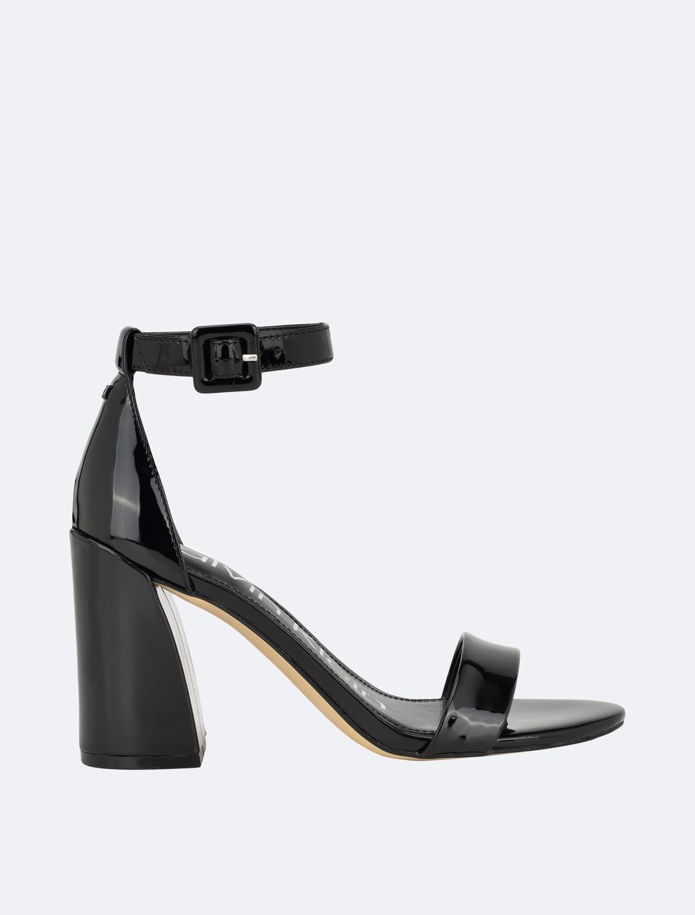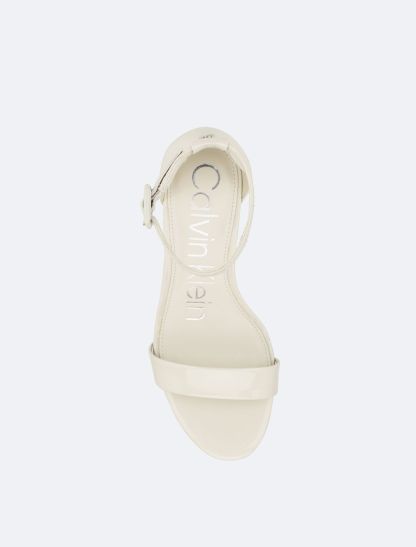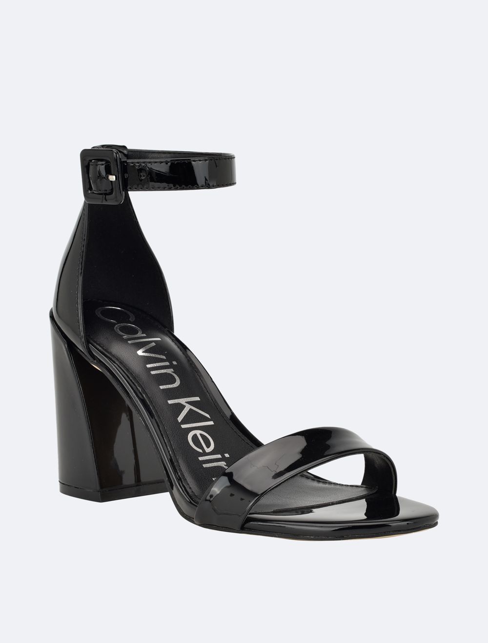 The finishing touch to your night out outfit, these sandals feature an open toe silhouette with a high block heel. Designed with an adjustable ankle strap for a personalized fit. Detailed with CK logo styling at the footbed.- Slips-on