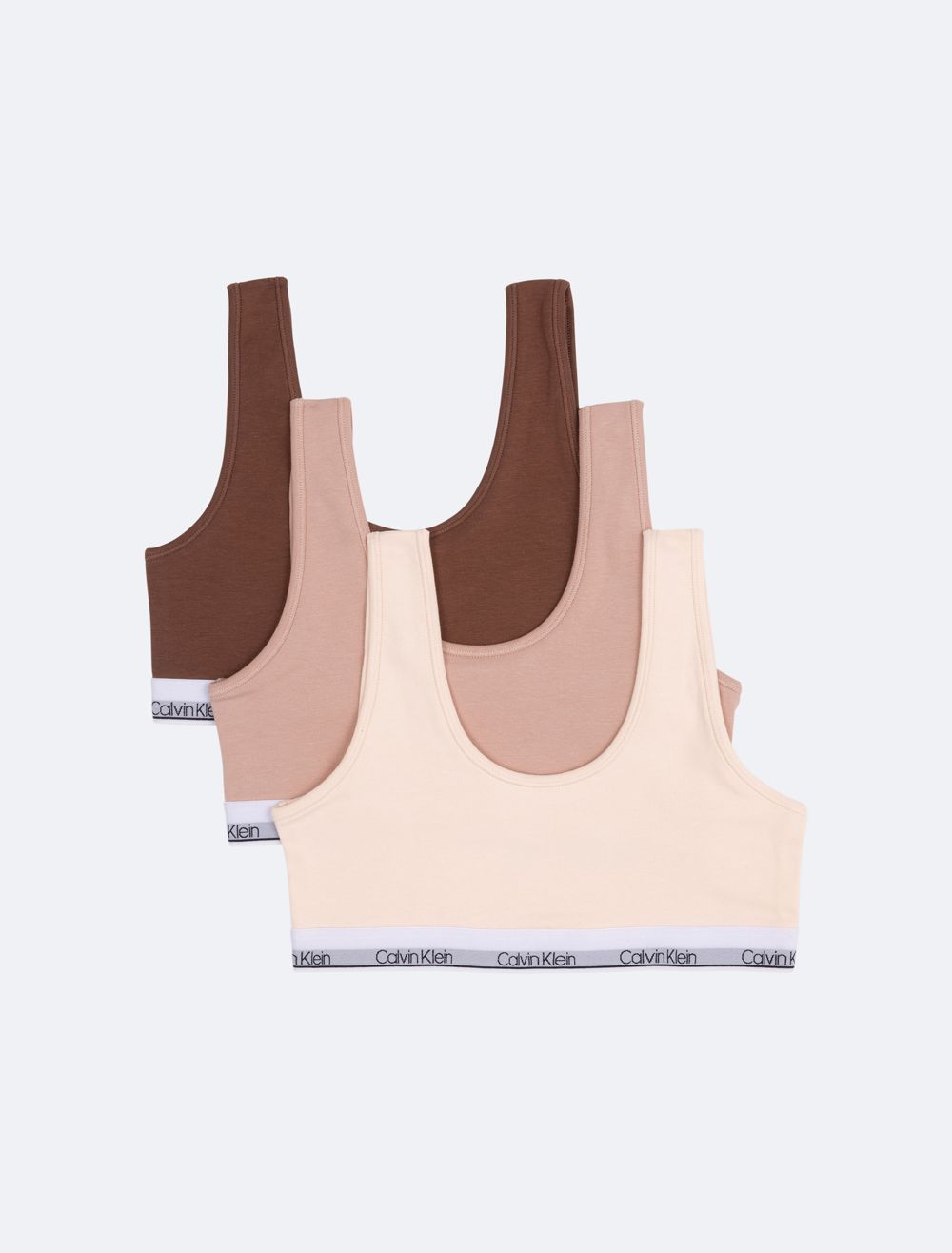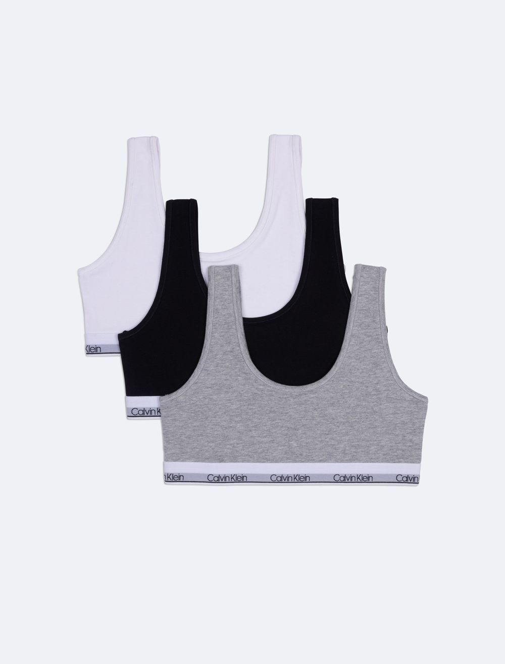 Created for total comfort, these modern cotton girls bras come in a 3-pack and feature a scoopneck, a u-back and a repeating logo elasticated band.- Scoopneck