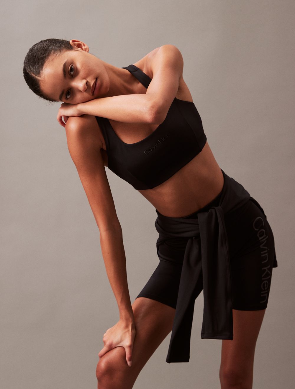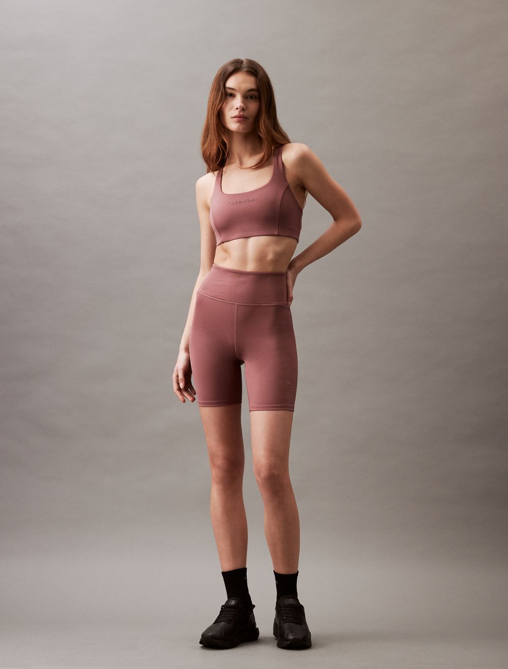 Featuring minimal, solid styling, these shorts are constructed from moisture-wicking fabric for total comfort and breathability during workouts. Created with high rise waist and a slim, fitted silhouette. Designed with an elastic waistband and tonal CK logo styling at the upper leg.- Moisture wicking fabric to keep you cool + dry