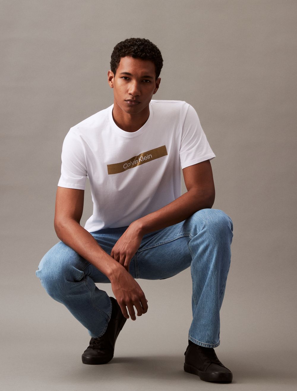 Styled with short sleeves and a crewneck, this t-shirt features a standard Calvin Klein logo graphic at the front. Made in a classic fit and crafted from 100% cotton for comfortable wear.- Calvin Klein logo graphic at the front