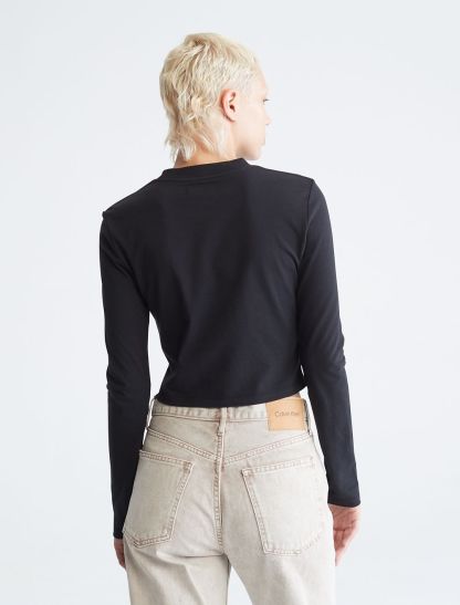 A long sleeve tee featuring a crew neckline and cut in a cropped length. Finished with an embroidered compact CK logo design at the upper chest.- Compact CK logo embroidery