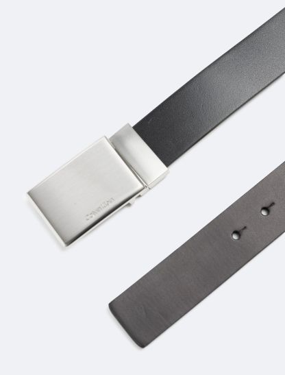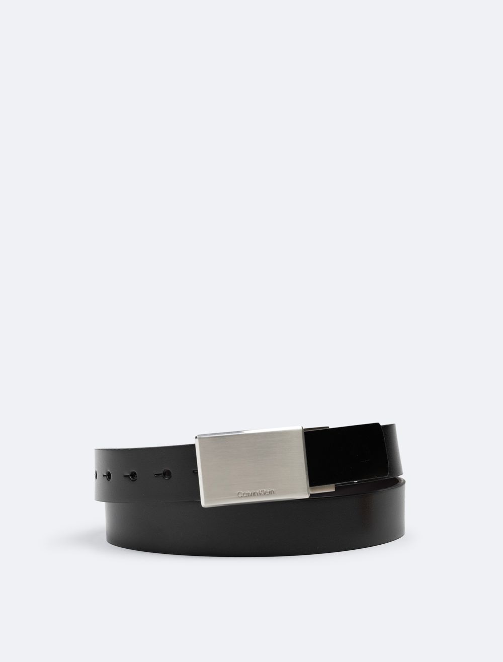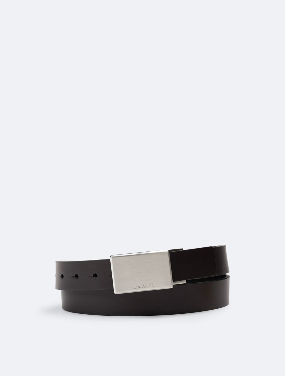 A simple and elevated silhouette, this belt is designed with a clean-cut look. Created with a metal plaque buckle detailed with an engraved CK logo.- Plaque buckle
