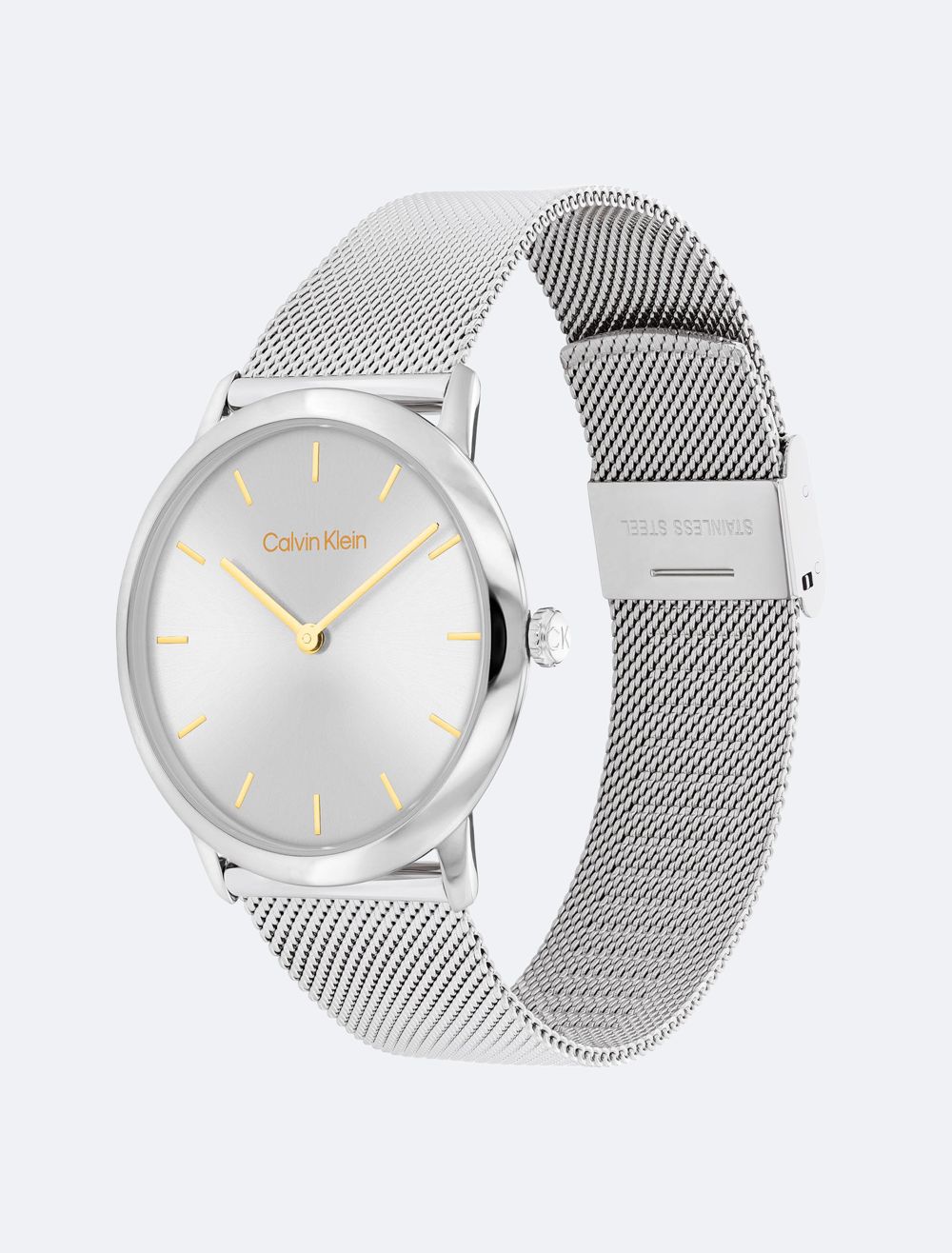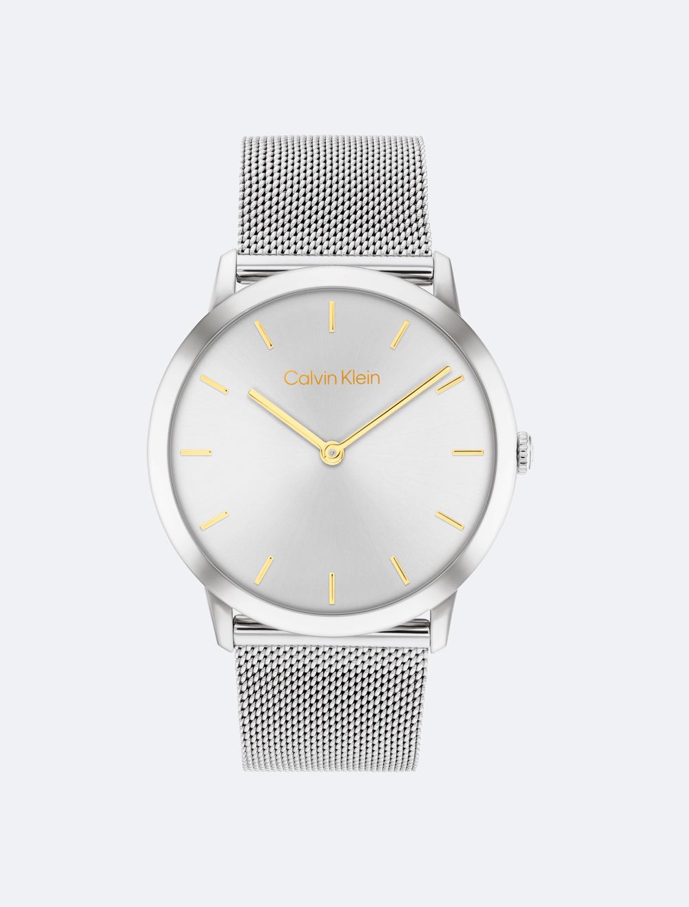 This reinvented classic timepiece is easy to style with an understated slim case profile, curved crystal and clean sunray dial with stick indices. Available on a slightly tapered mesh bracelet.- 37mm stainless steel or gold-plated case