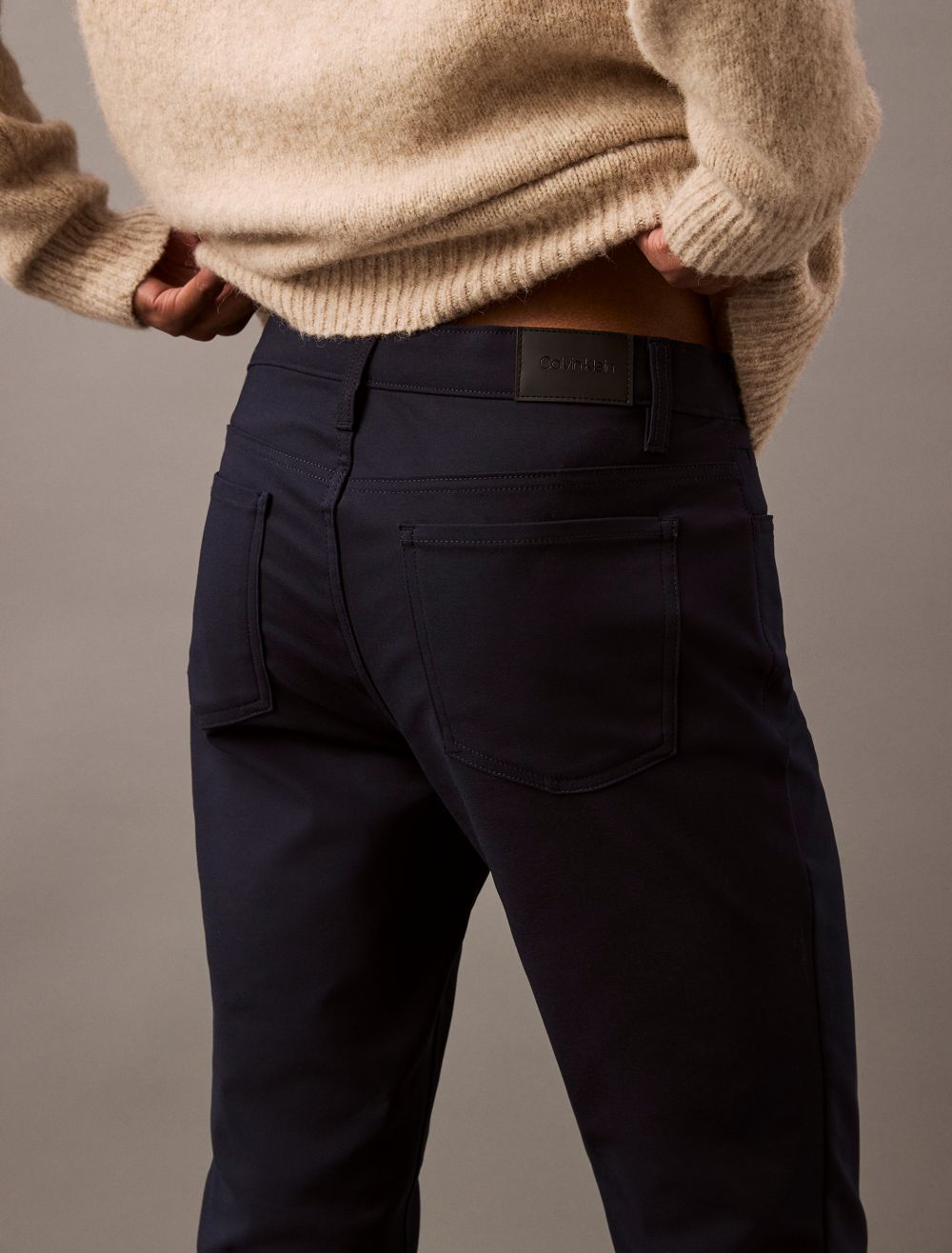 - Calvin Klein logo patch at the back waist