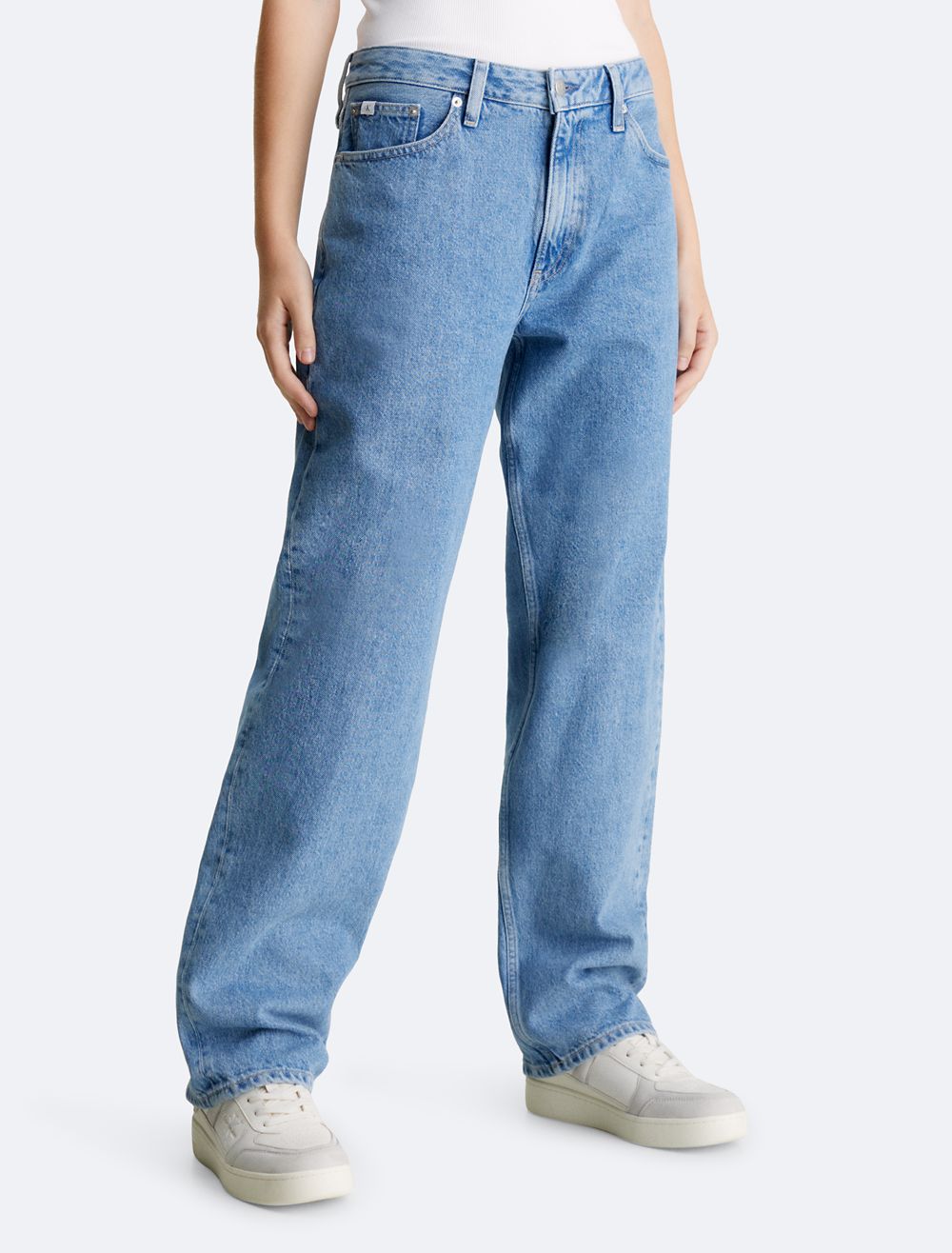 A 90s-inspired silhouette, these jeans are made with a high rise waist and a straight leg fit. Designed with a zip fly and a top button closure. Finished with a CK logo patch at the back waist and crafted from rigid cotton denim for a sturdy feel that will break-in over time.- High rise waist