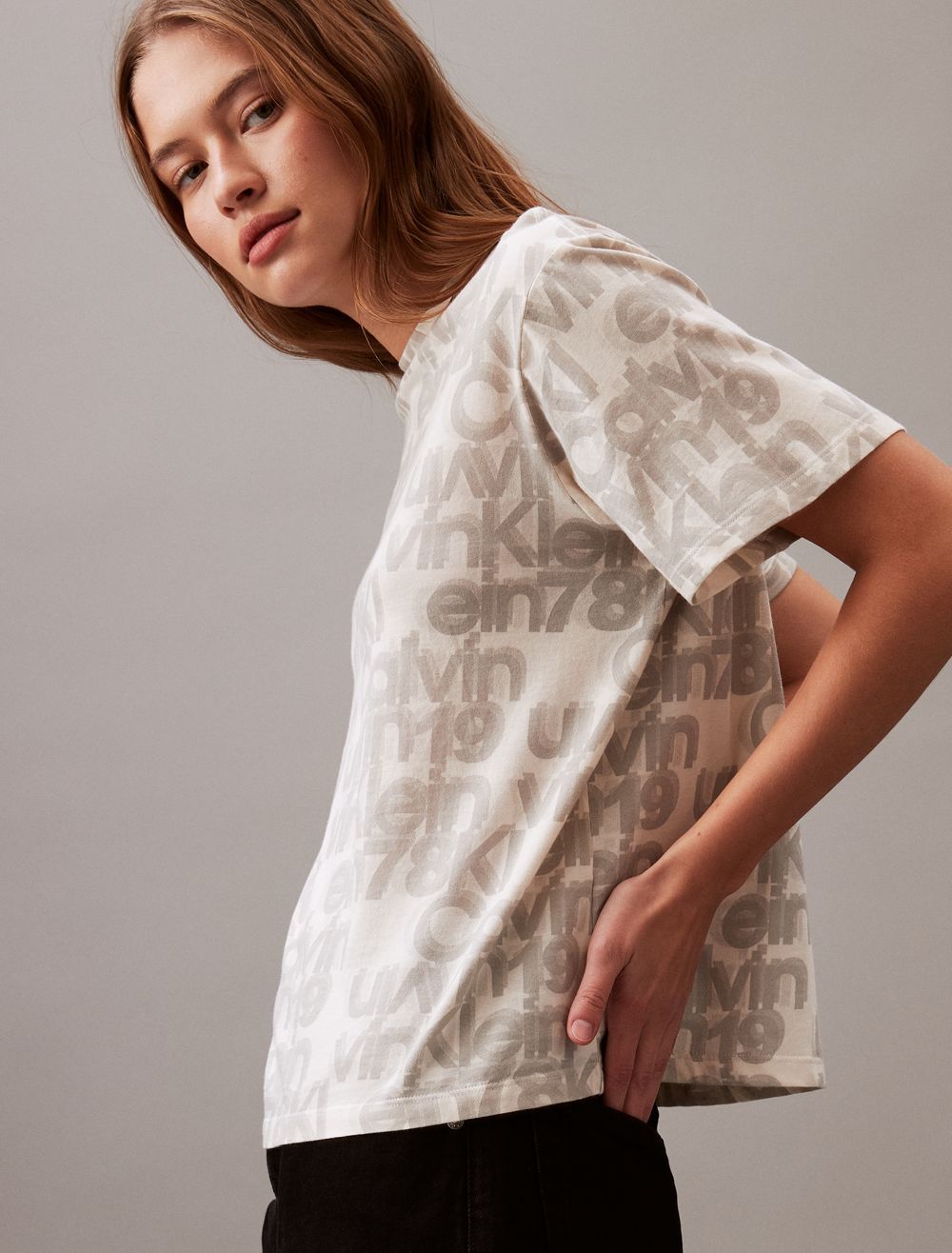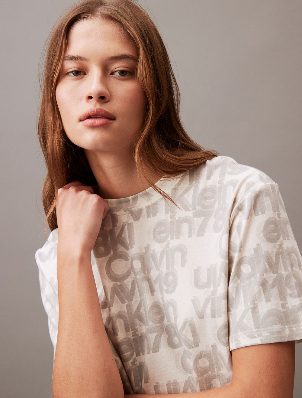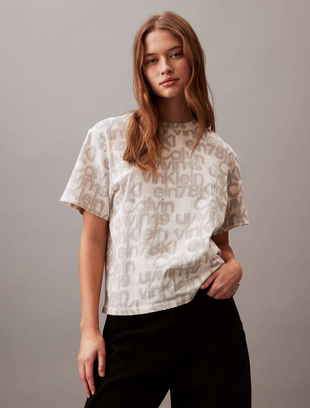Crafted from 100% cotton, this t-shirt is soft and breathable, perfect for everyday wear. Styled with short sleeves and a crewneck. Cut in a boxy, relaxed fit and features an allover logo print.- Allover CK logo print
