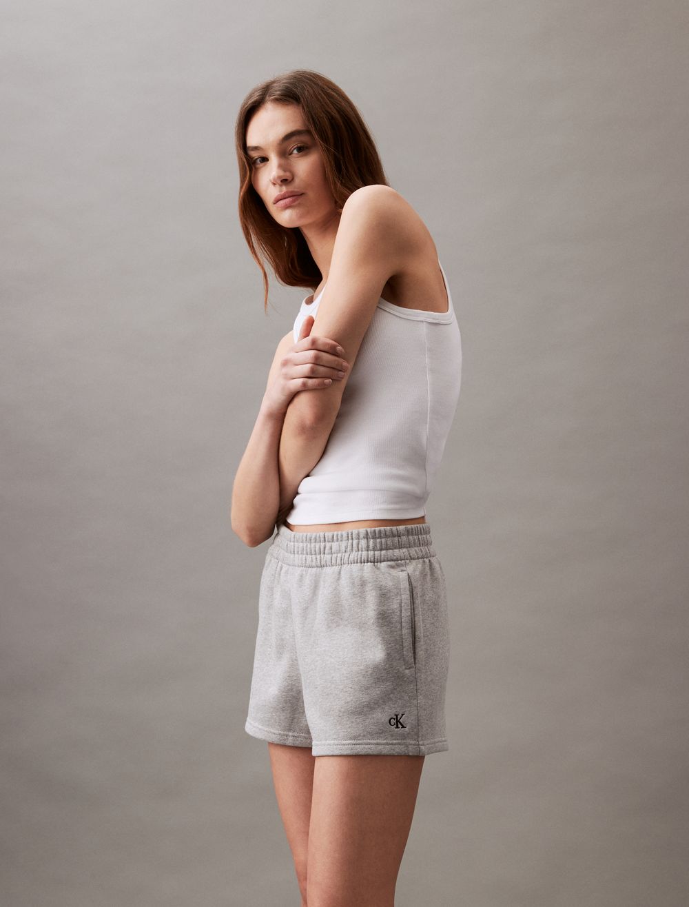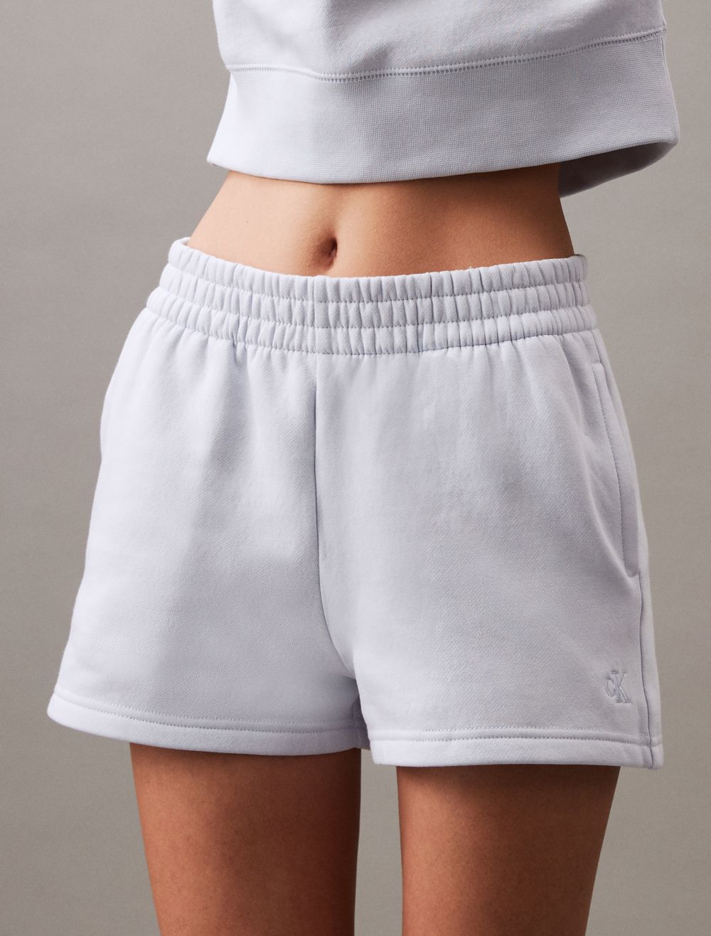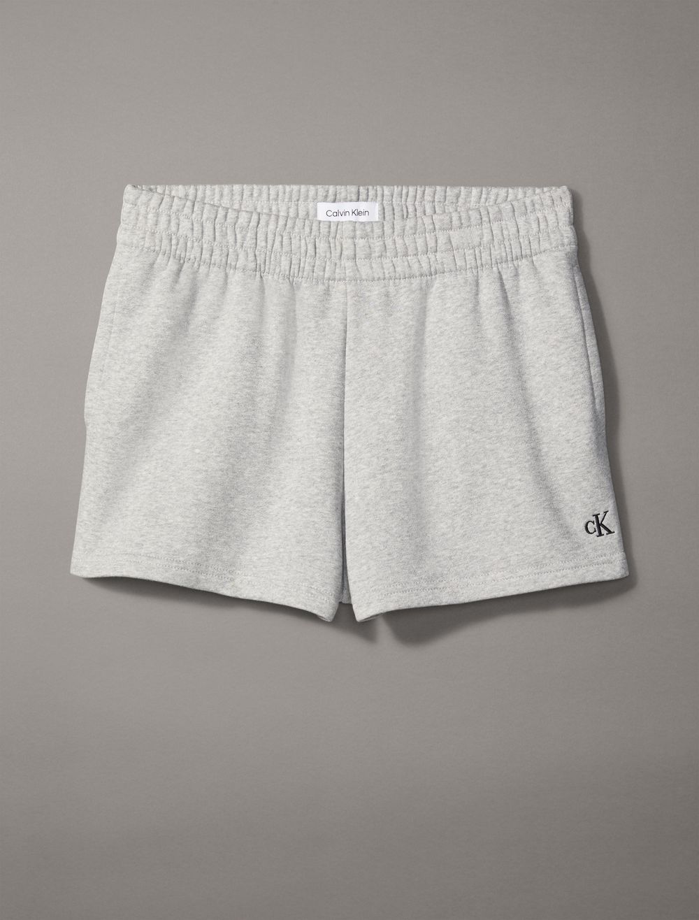 Reimagined classics, iconic Calvin. Designed with an archive-inspired logo, these updated CK shorts feature a plush cotton knit fleece blend for premium, all-day comfort. Finished with an elasticated waistband and angled front slip pockets.- Compact embroidered archive logo for a retro-inspired, signature look