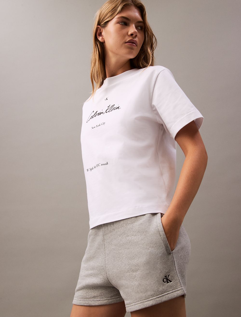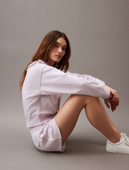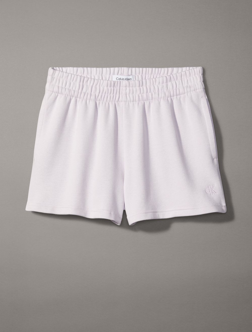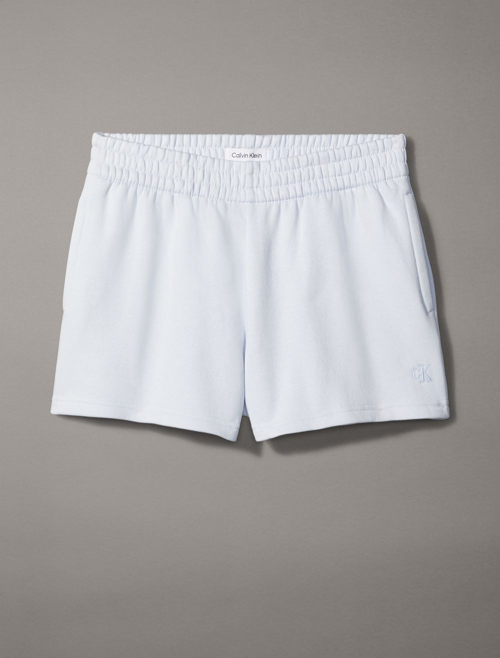 Reimagined classics, iconic Calvin. Designed with an archive-inspired logo, these updated CK shorts feature a plush cotton knit fleece blend for premium, all-day comfort. Finished with an elasticated waistband and angled front slip pockets.- Compact embroidered archive logo for a retro-inspired, signature look