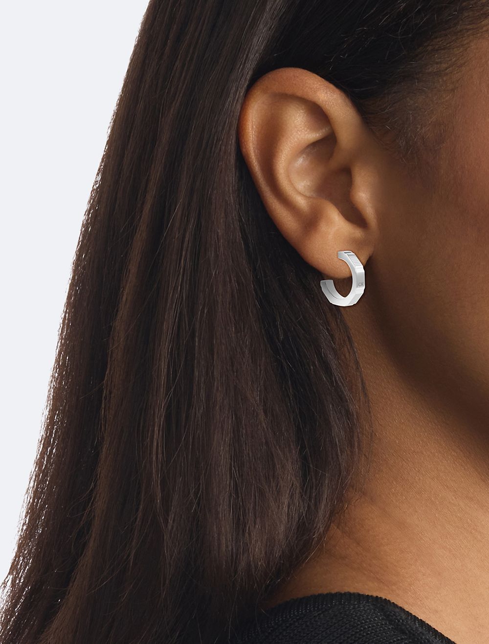 Created for elevated, everyday wear, these hoop earrings features etched details and engraved CK monogram logo styling. Crafted from polished stainless steel and made with a standard post design.- Offered in stainless steel or gold plating