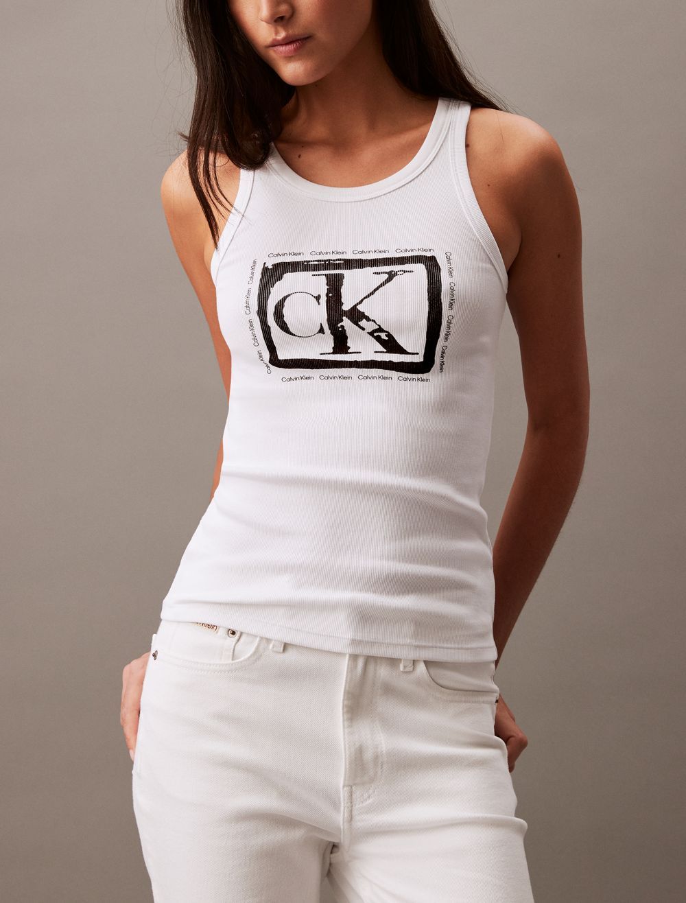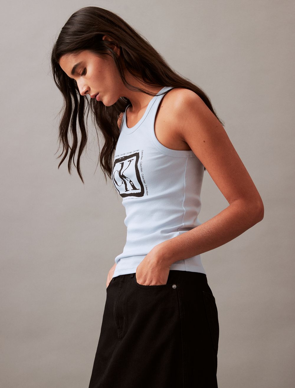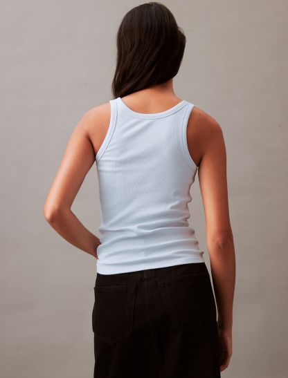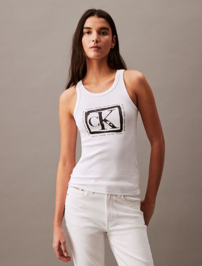 Designed with a fine ribbed texture, this tank top is made in a slim, form-fitting silhouette. Styled with a crewneck and a monogram logo graphic at the front. Crafted from a cotton stretch blend for flexible, breathable wear.- Monogram logo graphic at the front