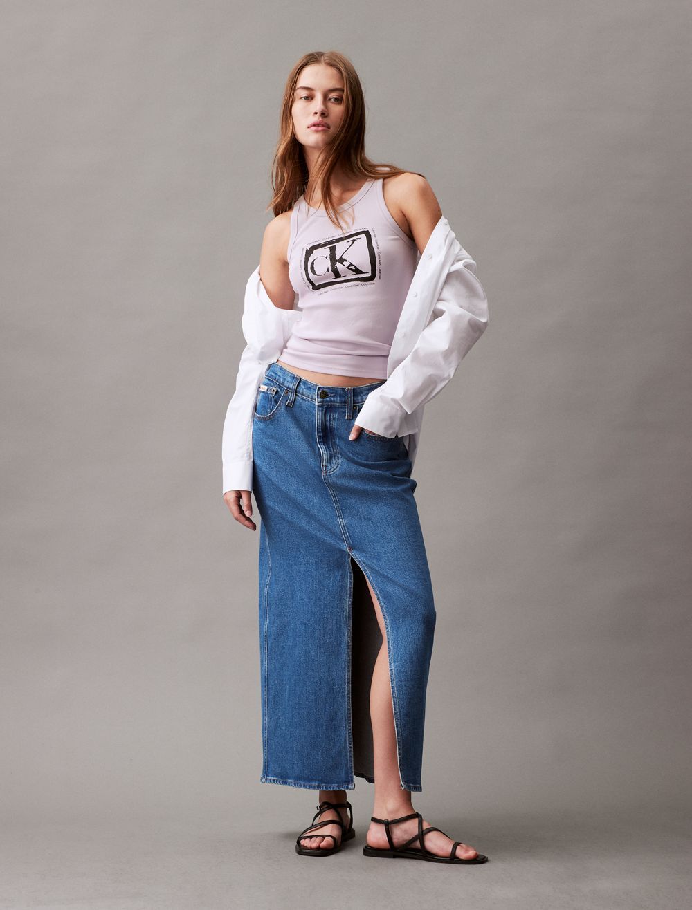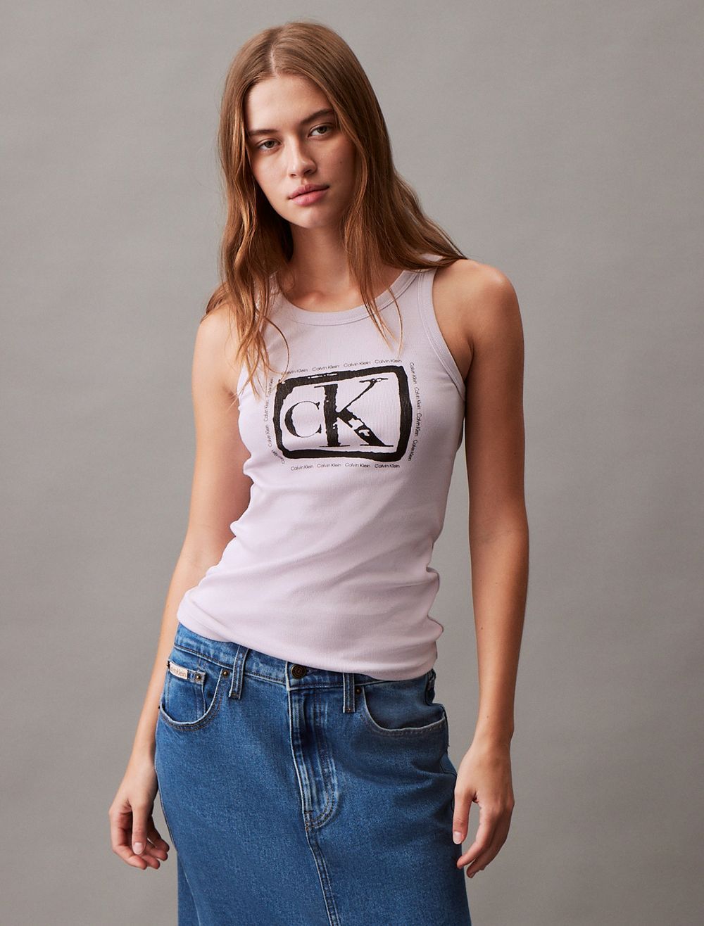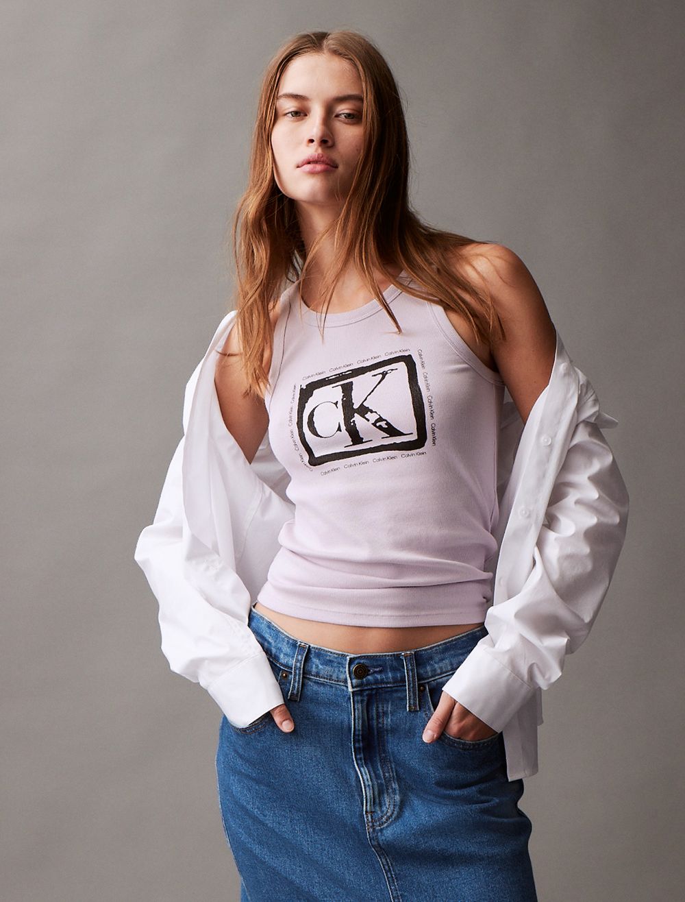 Designed with a fine ribbed texture, this tank top is made in a slim, form-fitting silhouette. Styled with a crewneck and a monogram logo graphic at the front. Crafted from a cotton stretch blend for flexible, breathable wear.- Monogram logo graphic at the front