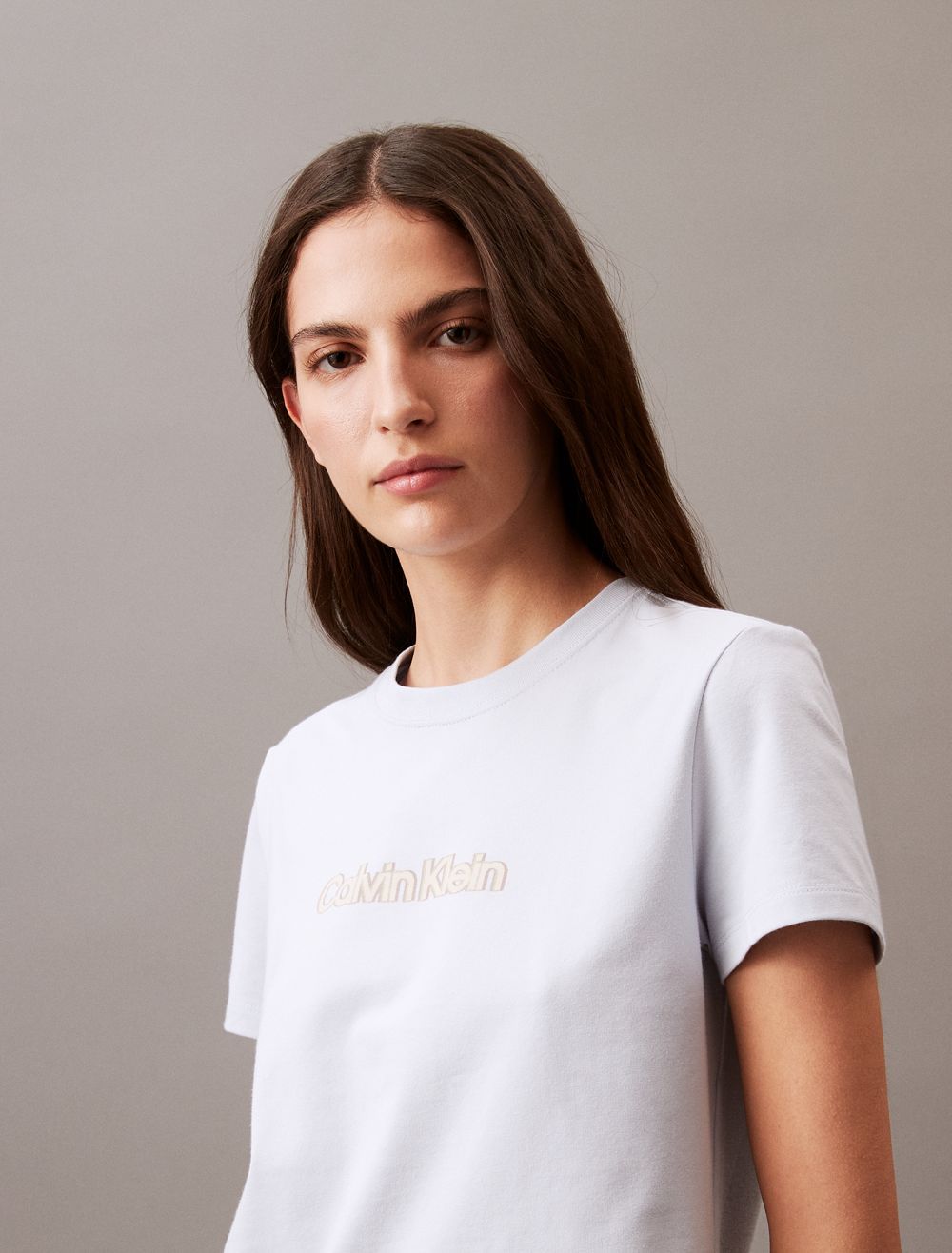 Crafted from soft cotton stretch for an effortless feel, this graphic t-shirt features a diffused CK logo at the upper chest. Styled with short sleeves and a crewneck. Cut in a slim silhouette for a closer fit.- Short sleeves + crewneck