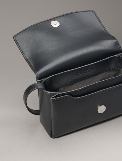 Crafted with a boxy silhouette, this crossbody bag is made with a structured, elevated design. Features a top flap with a snap button closure. Styled with an adjustable shoulder strap for a personalized fit.- Top flap design
