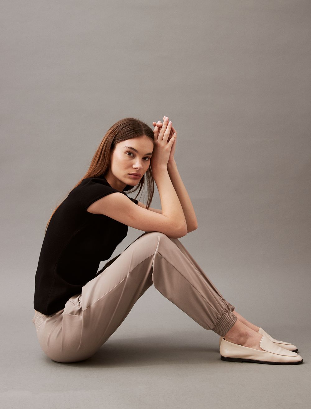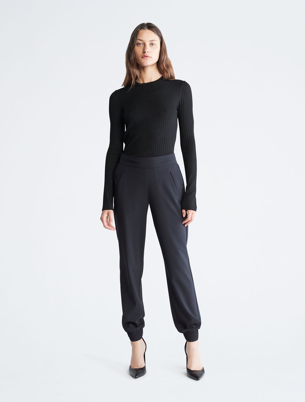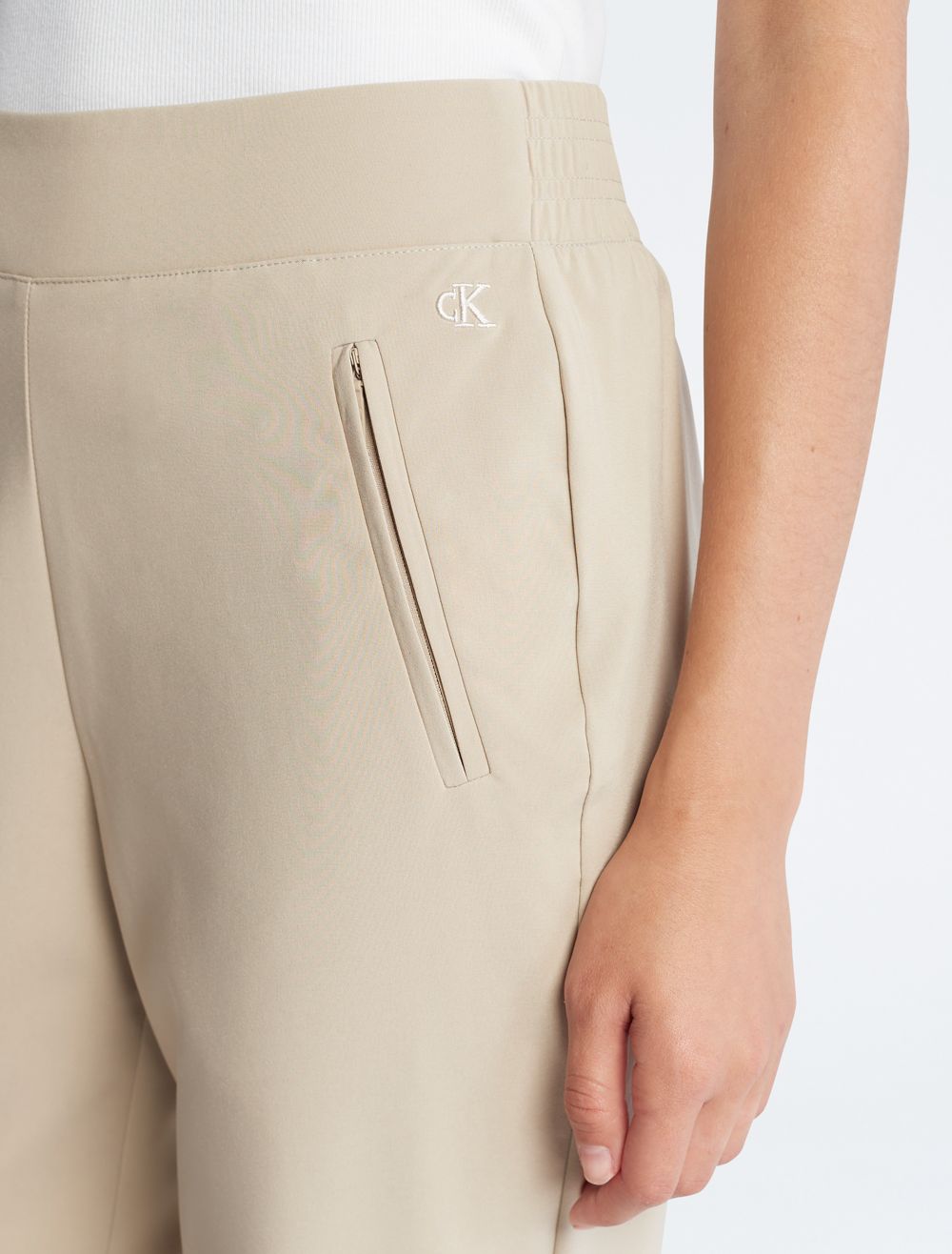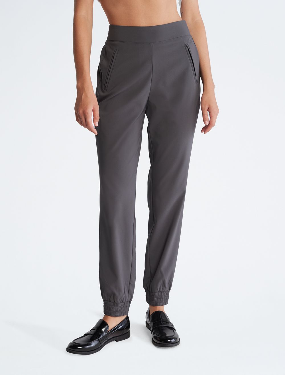 A versatile piece, these joggers can be styled up for a chic outfit. Features slip pockets with zip closures at both sides. Designed with an elastic waist and elastic cuffs at the leg openings for flexible wear.- High rise waist