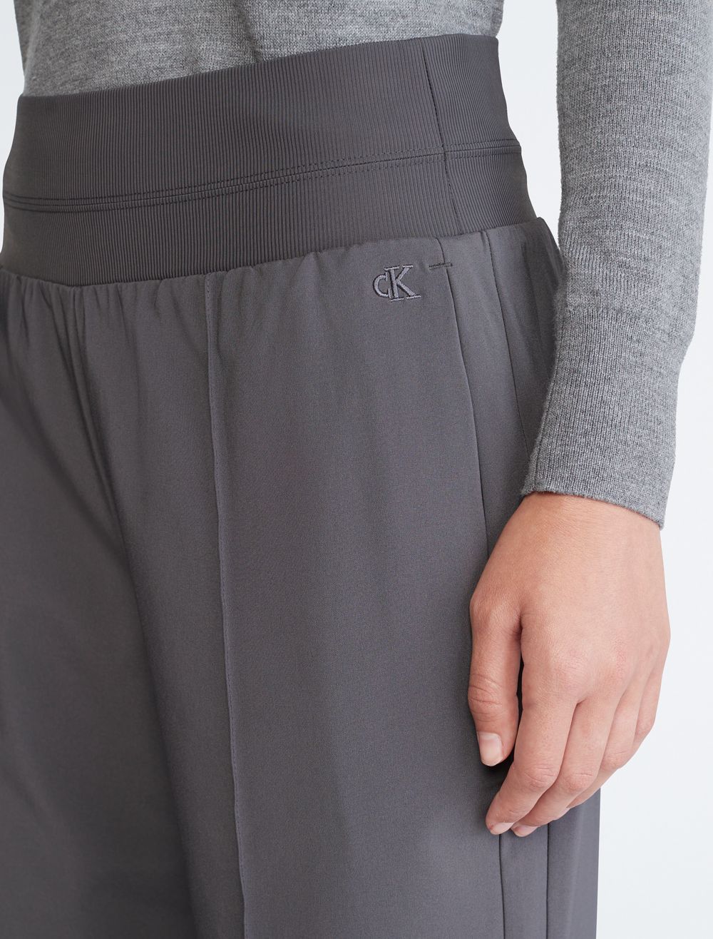 - CK monogram logo embroidery near the hip