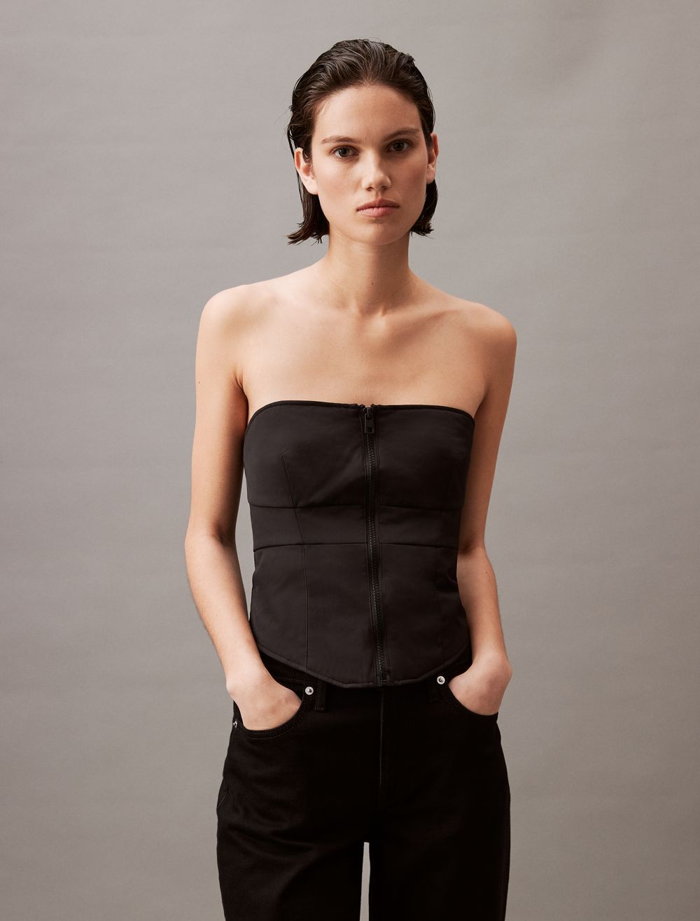 About the Padded Zip Bustier Top