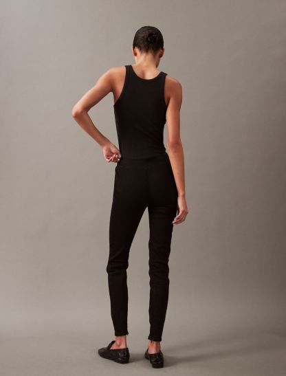 Crafted from cotton-stretch denim, these pants have a slim, fitted sihouette. Cut with a high rise waist and detailed with a split hem at the leg openings. Finished with topstitching accents.- Skinny fit