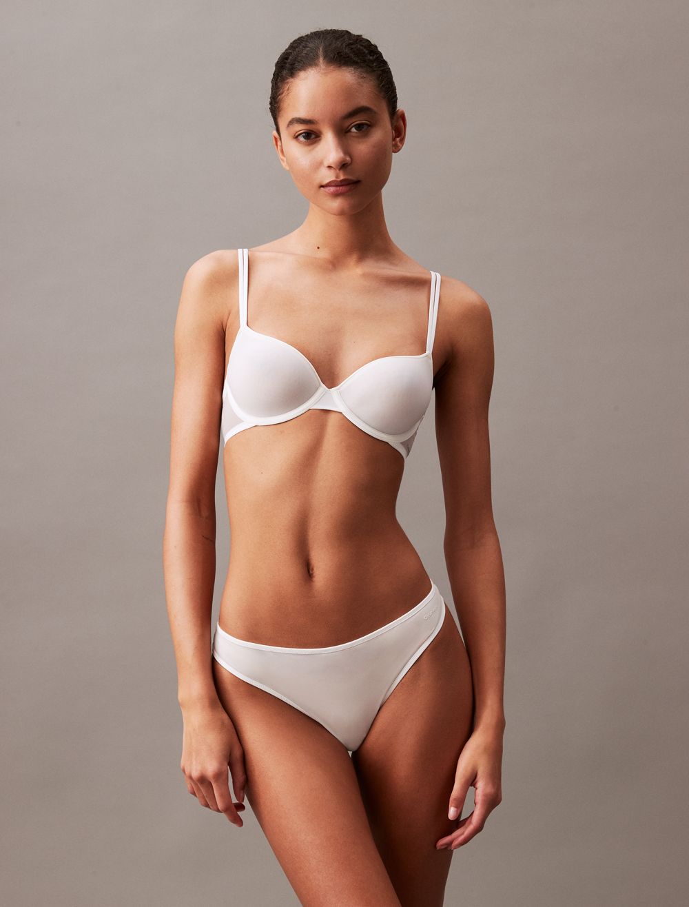 Reintroducing Sheer Marquisette, evolved for a new sustainable era. This lightly lined demi bra is made from recycled nylon yarns with soft stretch and semi-sheer styling. Finished with a spacer at center for weightless shaping, bonded edges and adjustable double rouleau straps for convertible wear. Sensuality redefined, with recycled materials.- Recycled nylon yarns for an eco-conscious design