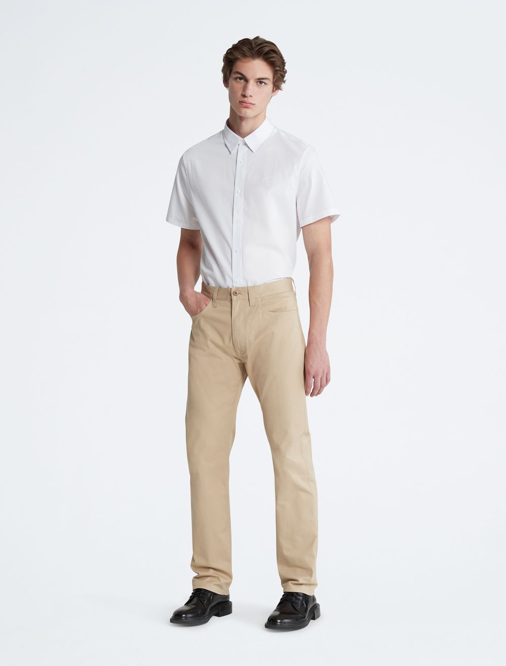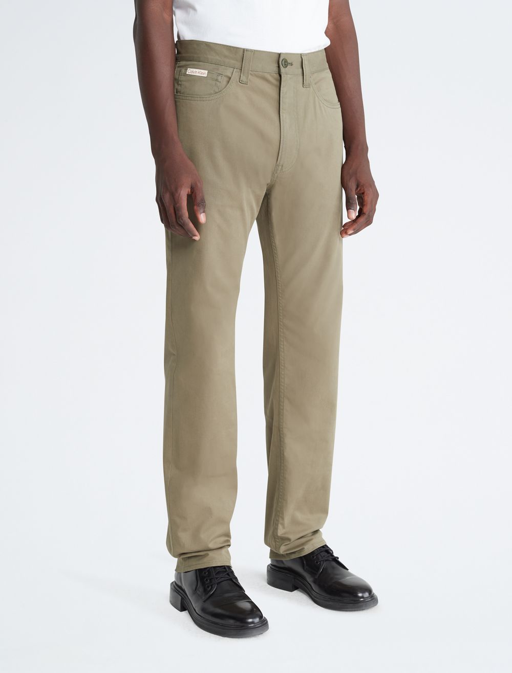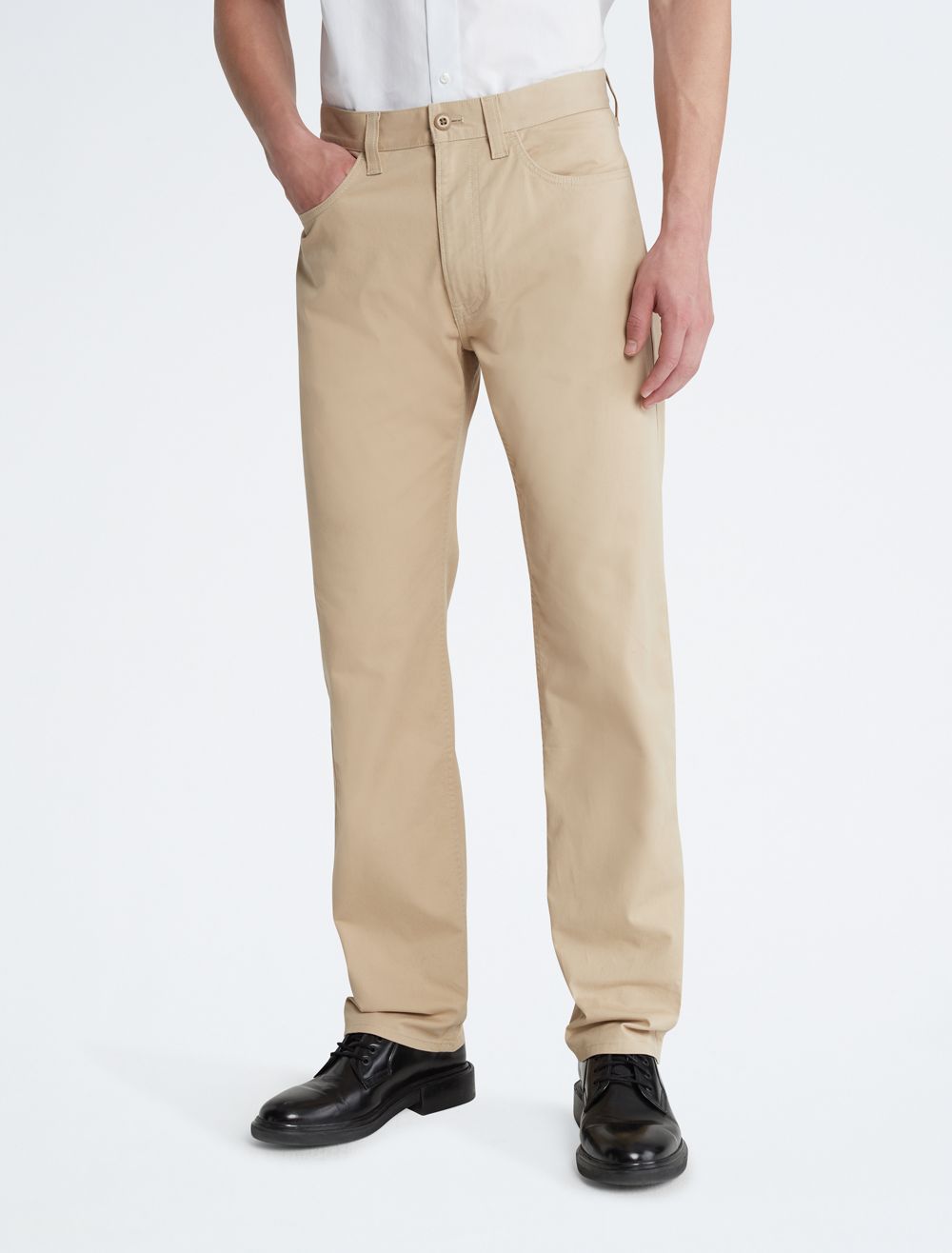 Styled in a straight fit, these chino pants are a versatile piece suited for both elevated and casual outfits. Crafted from a cotton stretch blend for breathable comfort and effortless wear. Made with a medium rise waist and slip pockets at both sides.- Straight fit