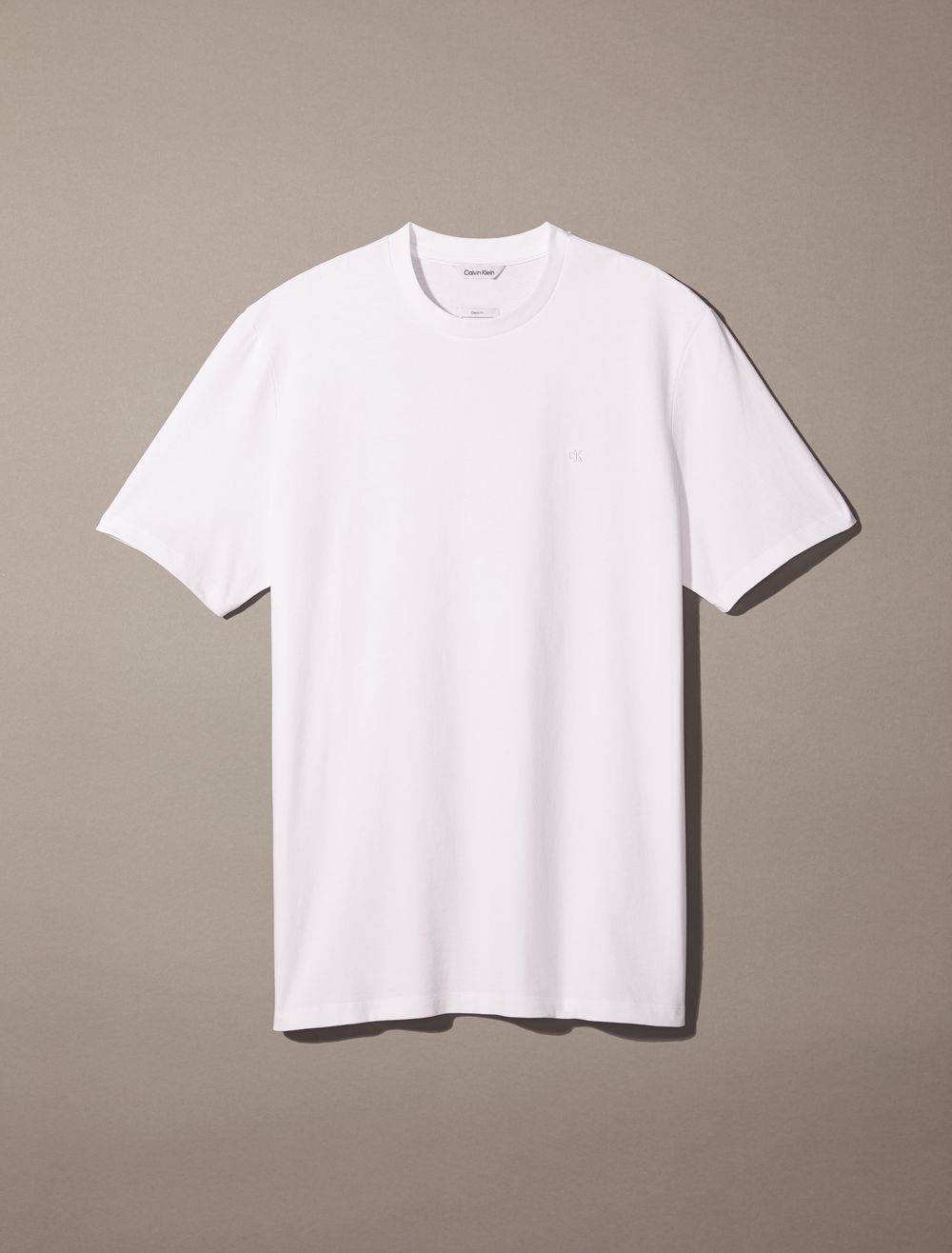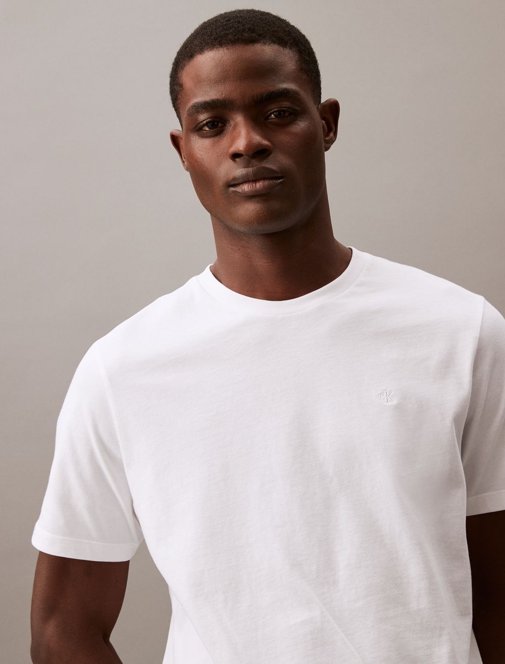 Crafted from compact cotton with an extra sleek feel, this Calvin Klein t-shirt features versatile solid styling for a timeless look. Finished with a crewneck and tonal monogram logo embroidery in a wide array of colors.- Solid design for versatile, easy-to-wear styling