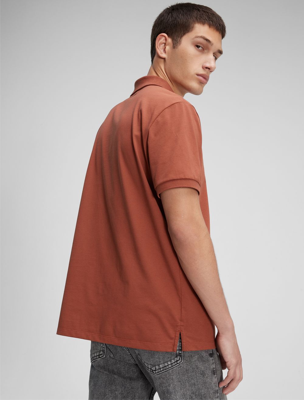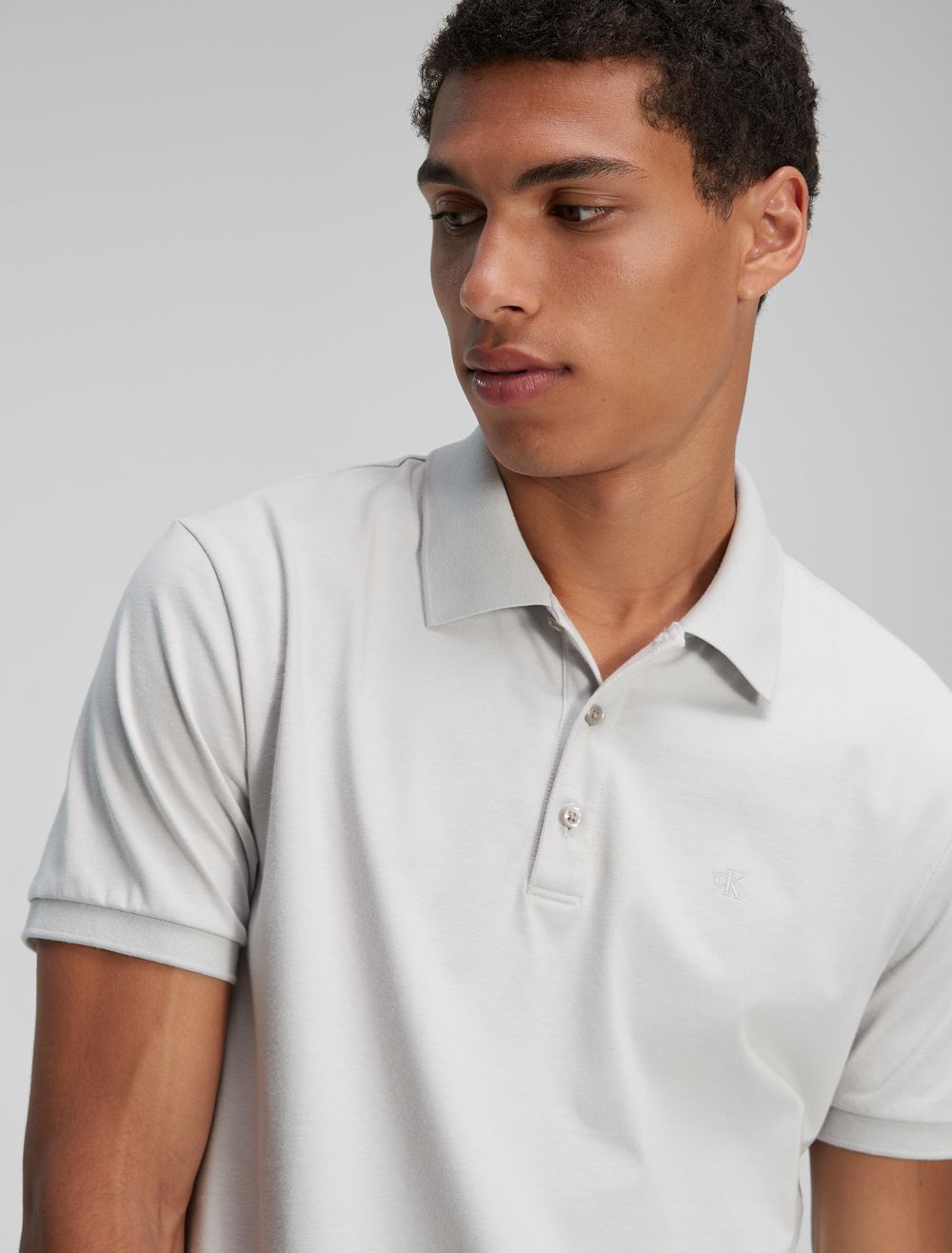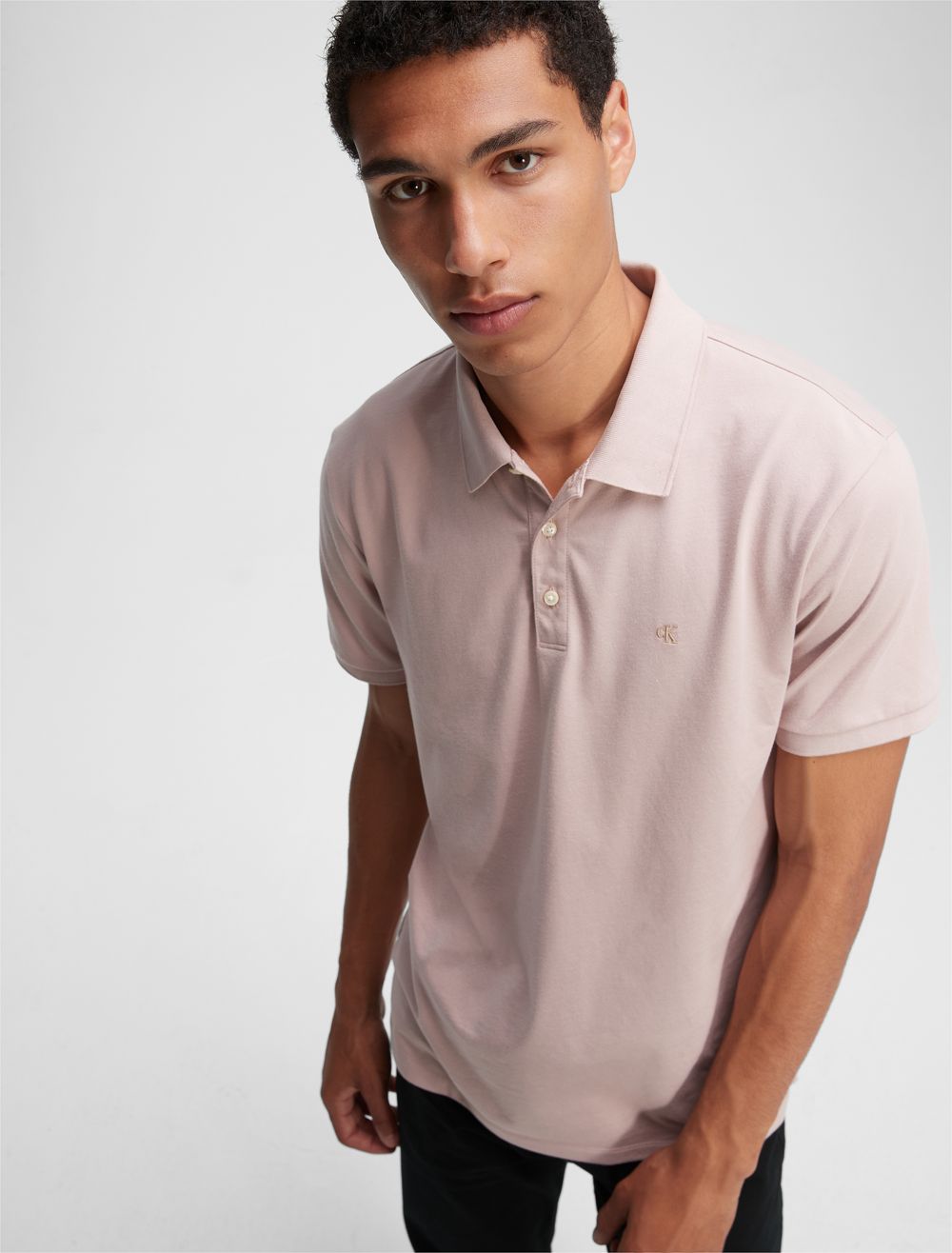 Sporty and modern, this signature Calvin Klein polo shirt is crafted from a compact cotton blend for a smooth hand with an extra sleek feel. Made with an embroidered monogram logo in a diverse array of seasonal colors.- Versatile solid styling in a diverse array of seasonal colors