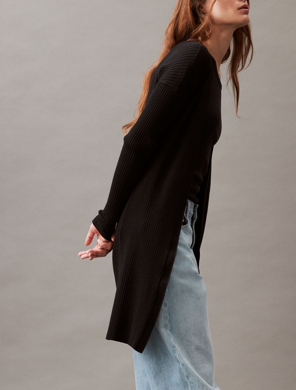 Smooth Cotton Rib Sweater Duster