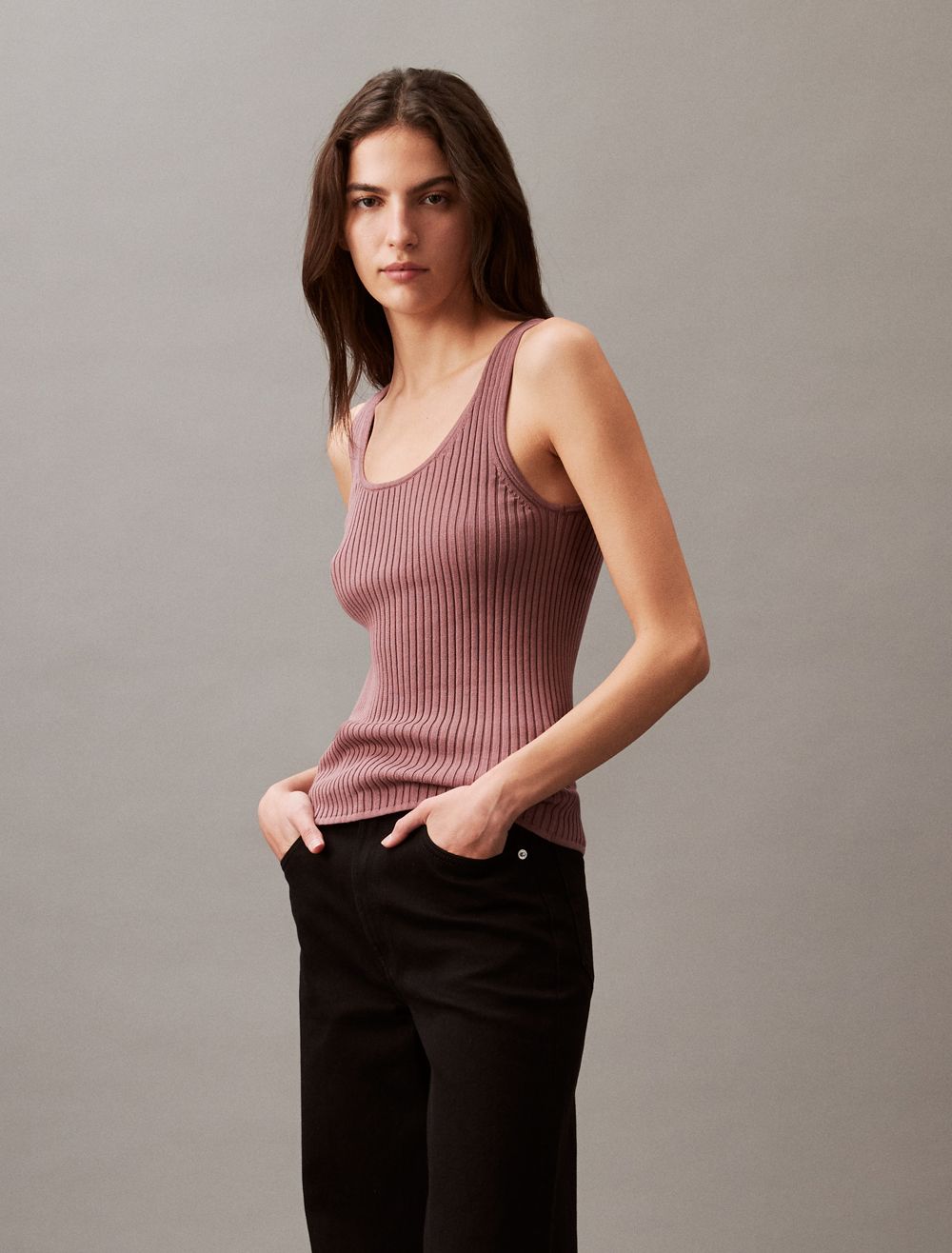 Smooth Cotton Rib Sweater Tank Top