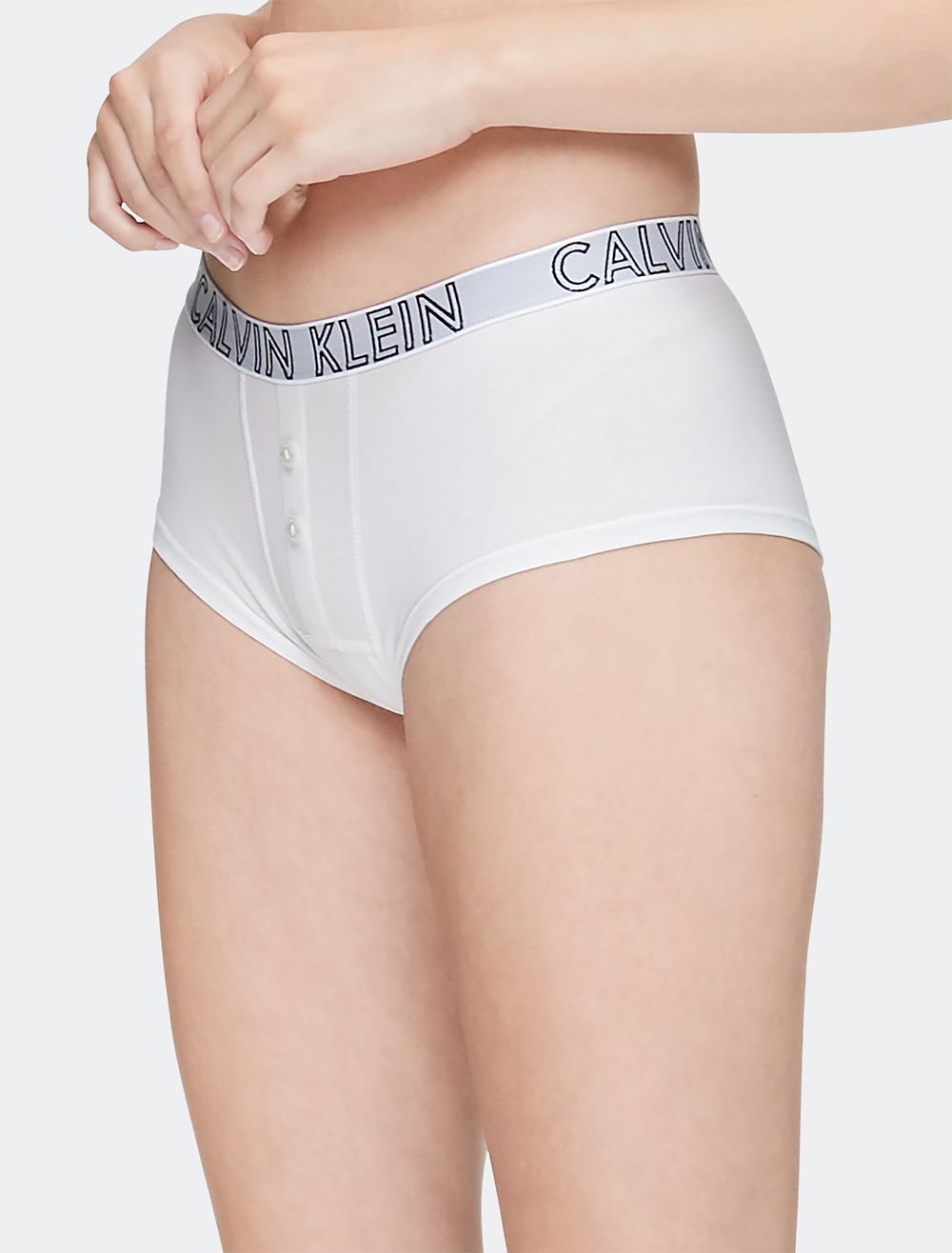 Part of our Ultimate Cotton collection, this sleek and unique boyshort is crafted with cotton stretch, an outline logo band and a decorative 2 button front.- Extra soft cotton stretch blend for flexible, breathable comfort