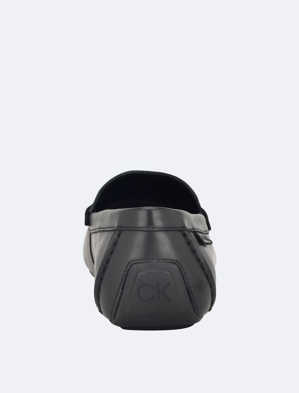 A polished silhouette, this loafer slips on for easy wear. It has an almond toe and is detailed with topstitching accents. Features Calvin Klein logo styling at the footbed.- Slips-on