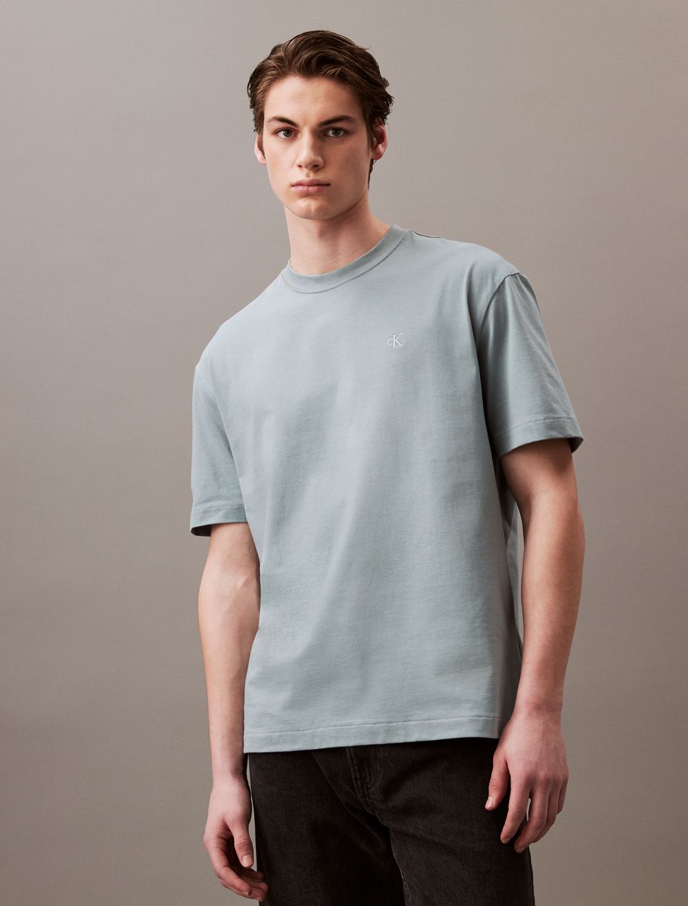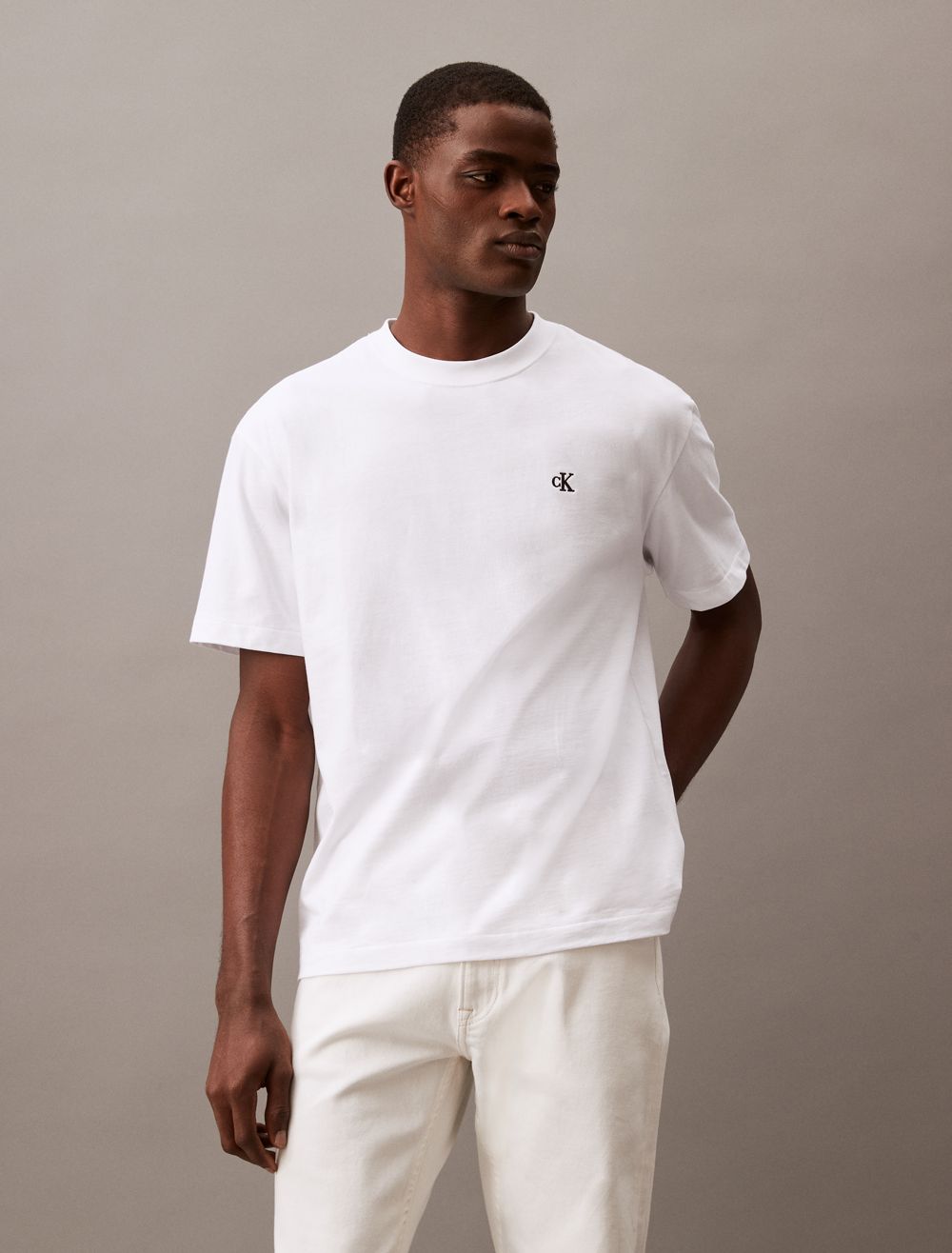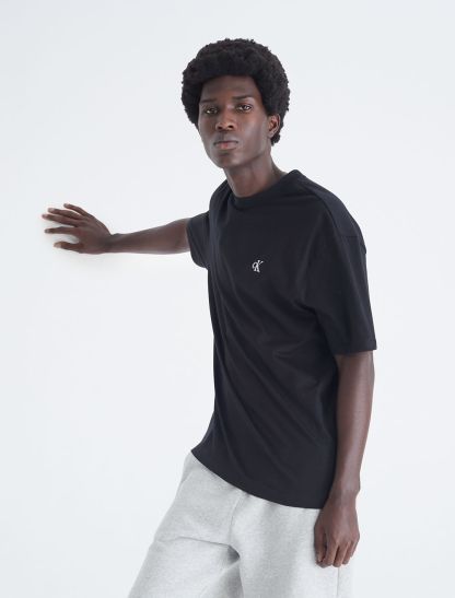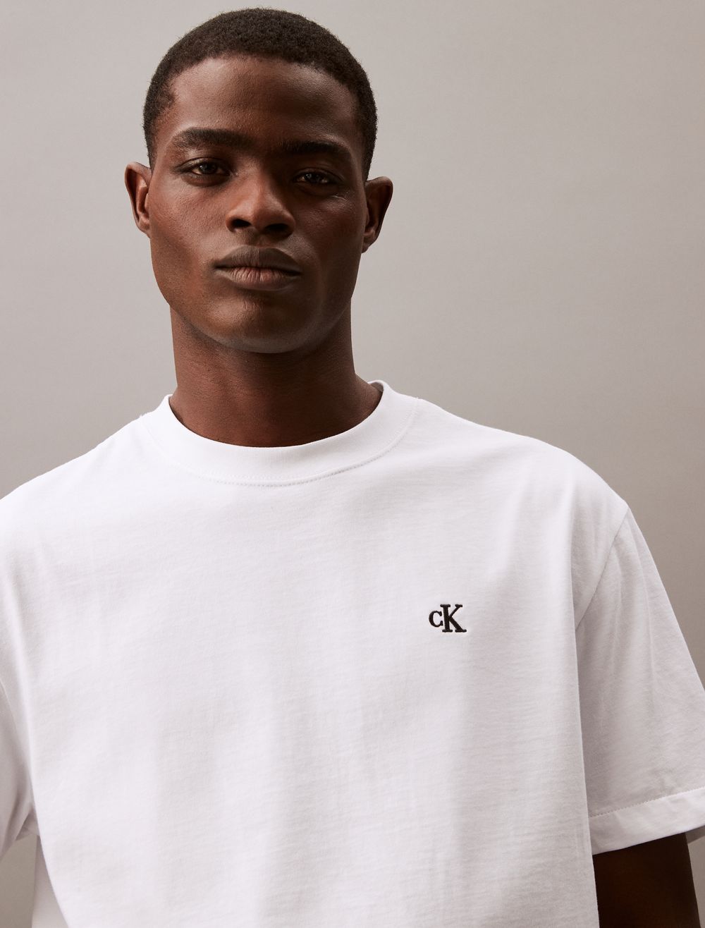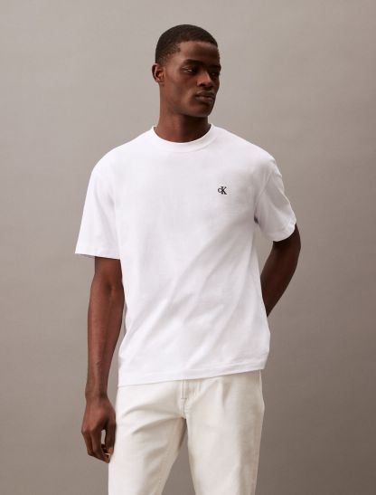 Reimagined classics, iconic Calvin. Crafted from soft cotton for an effortless feel, this Calvin Klein t-shirt features an embroidered archive logo at front for an iconic, signature design. Cut in a relaxed fit with a crewneck, a straight hem and twin-needle topstitching.- Embroidered archive logo at front for an iconic, signature design