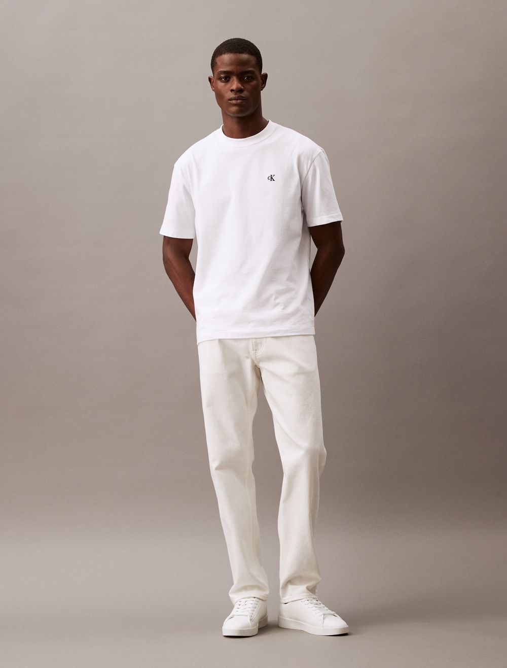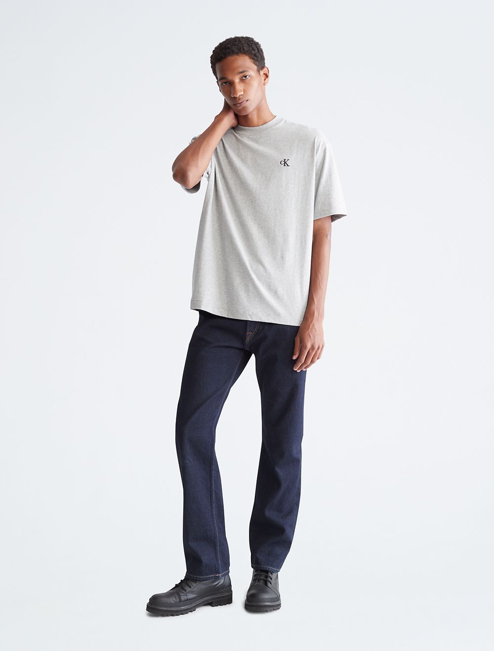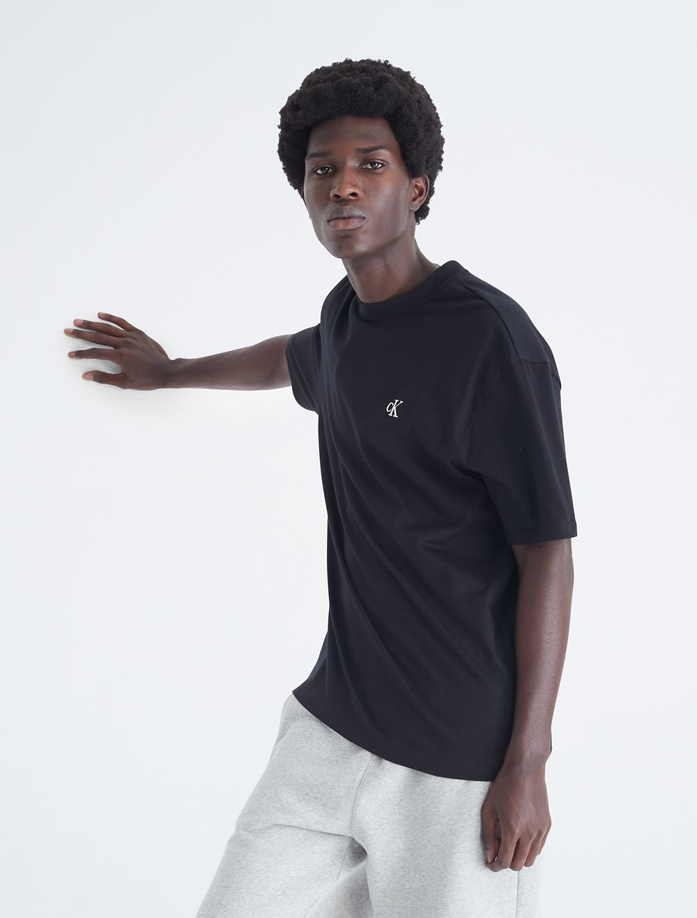 Reimagined classics, iconic Calvin. Crafted from soft cotton for an effortless feel, this Calvin Klein t-shirt features an embroidered archive logo at front for an iconic, signature design. Cut in a relaxed fit with a crewneck, a straight hem and twin-needle topstitching.- Embroidered archive logo at front for an iconic, signature design